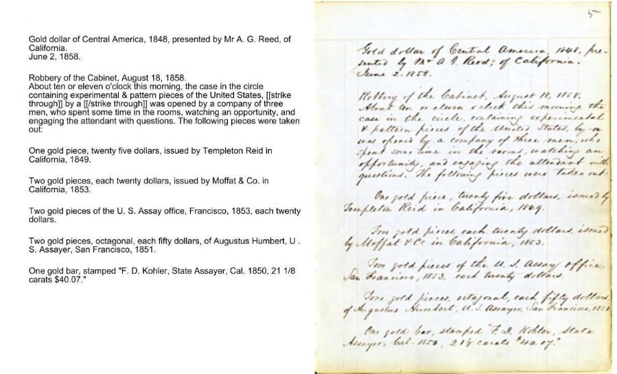 The Theft of 1858--Lax Security/Public Access to the Philly Mint Cabinet