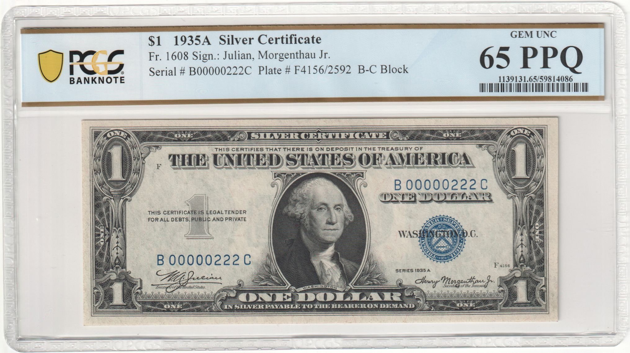For Sale: 1935A Low Serial Silver Certificate PCGS Graded & 1929 $10 Kansas Fed Reserve Bank Note
