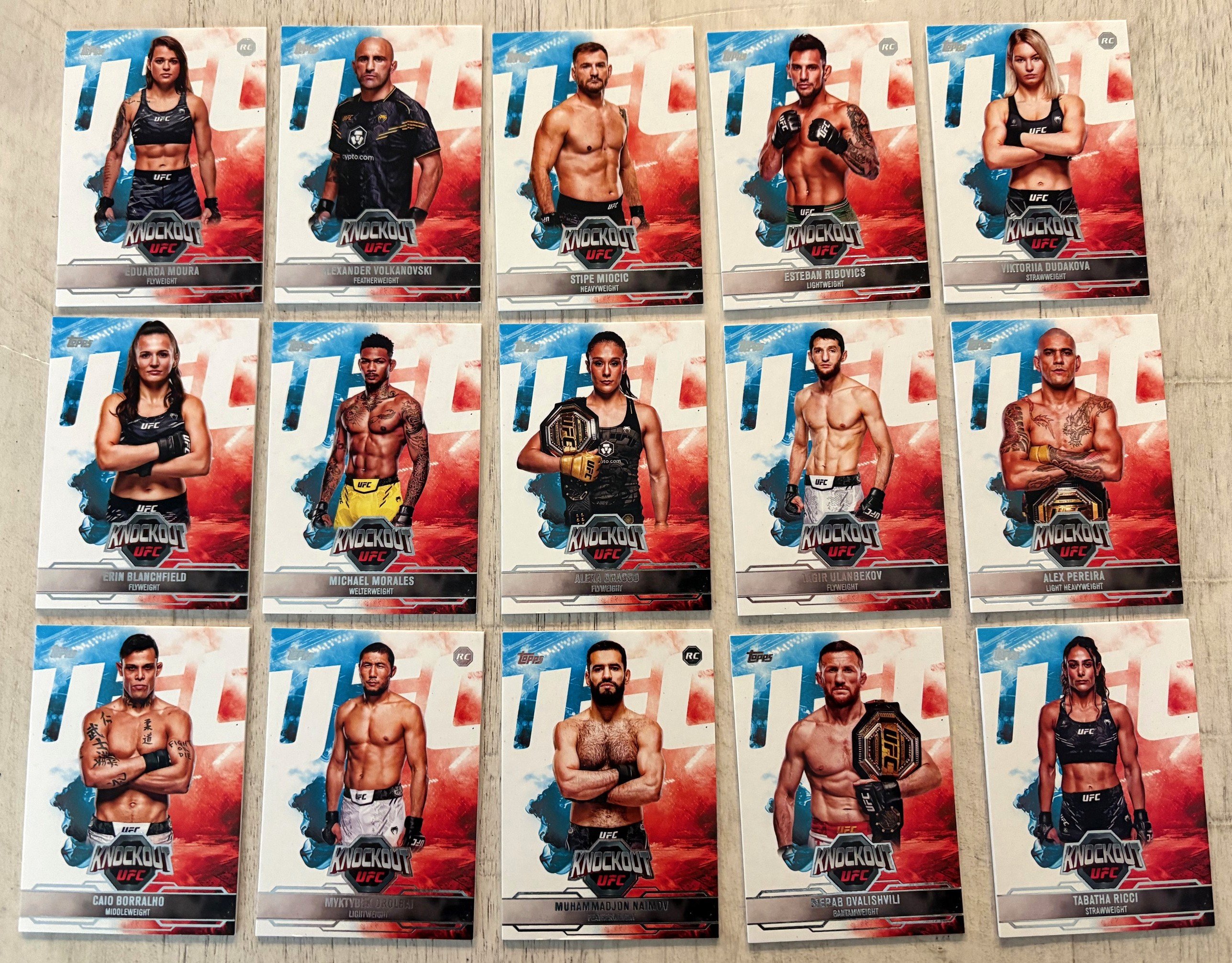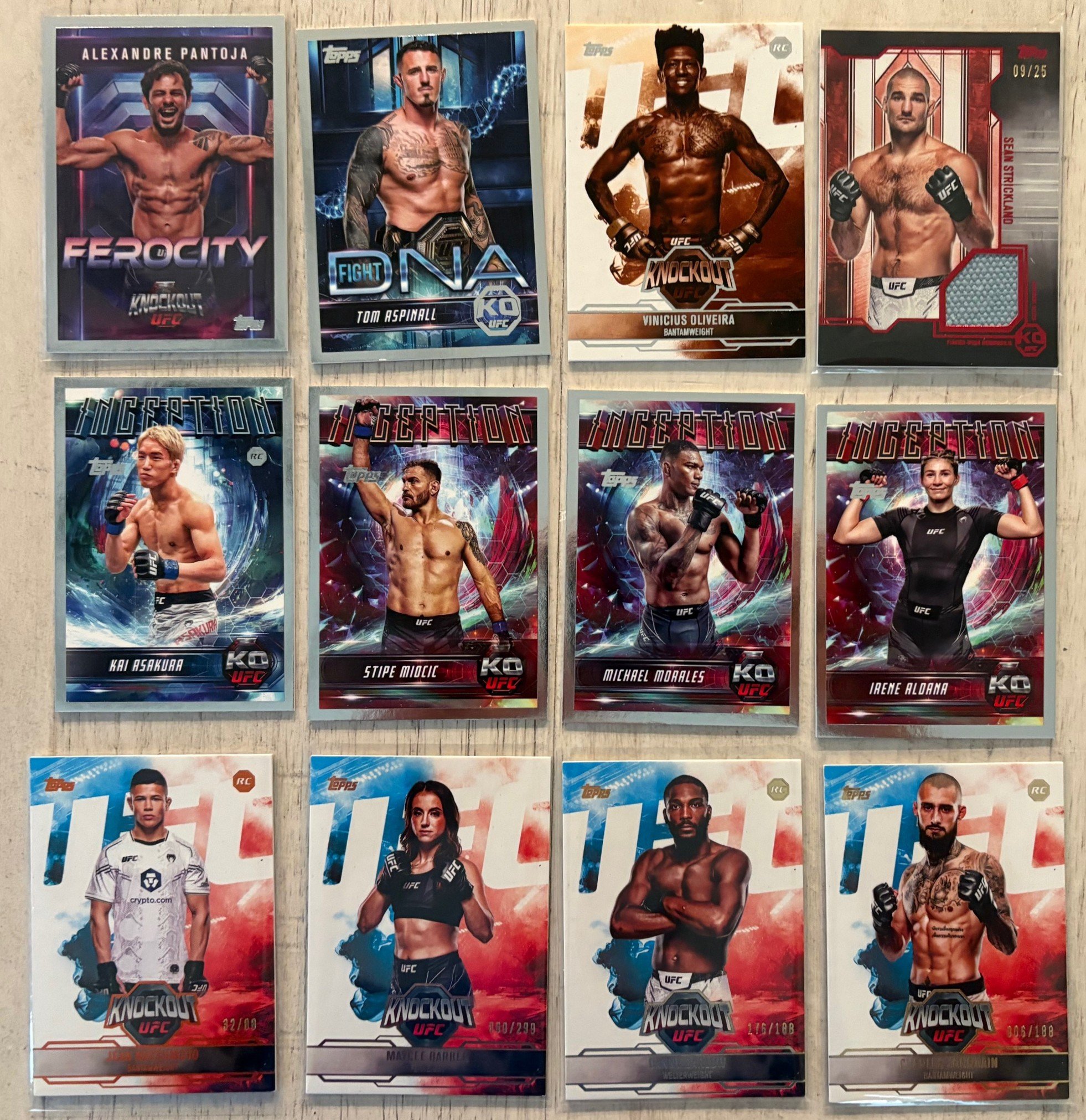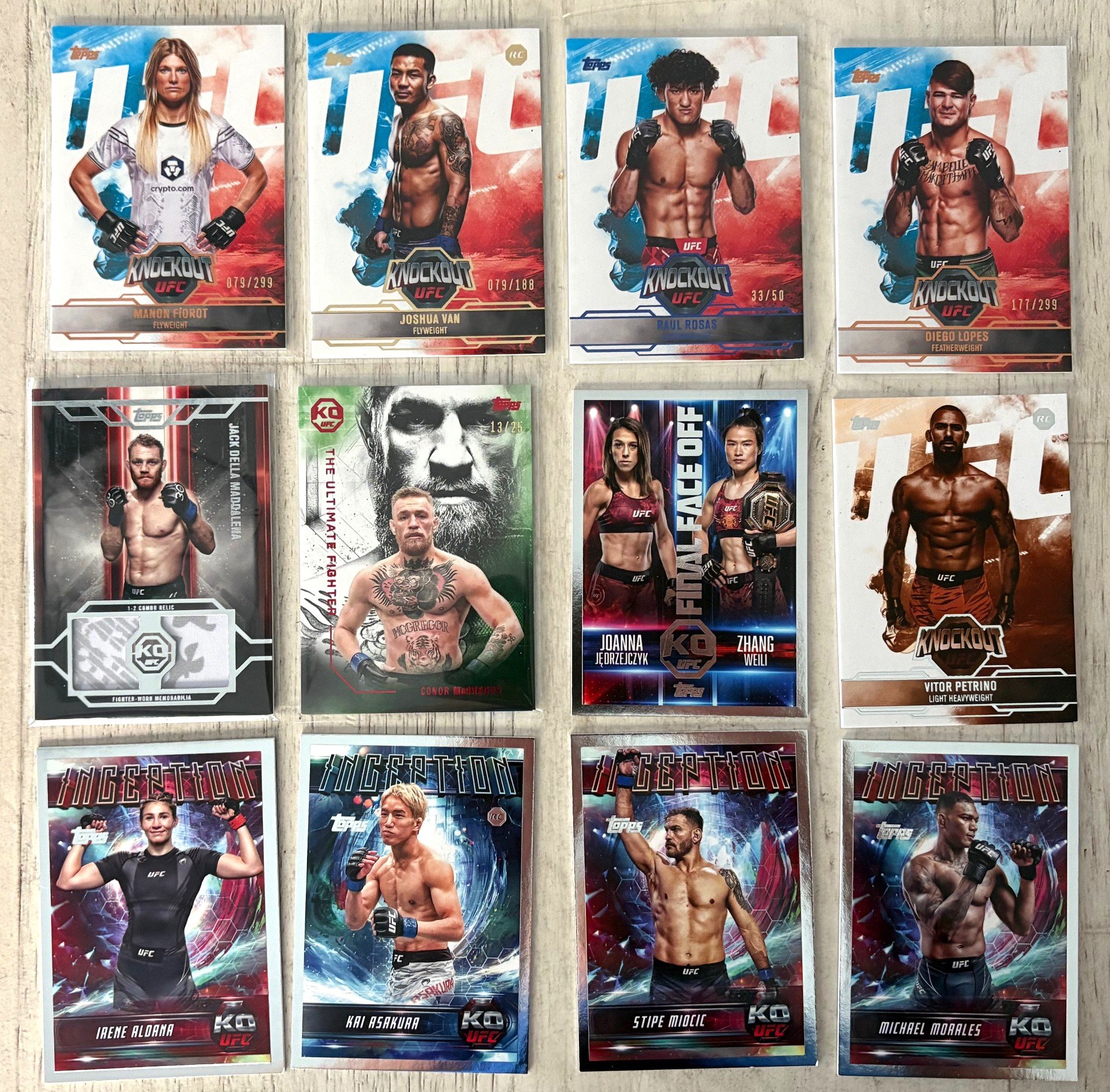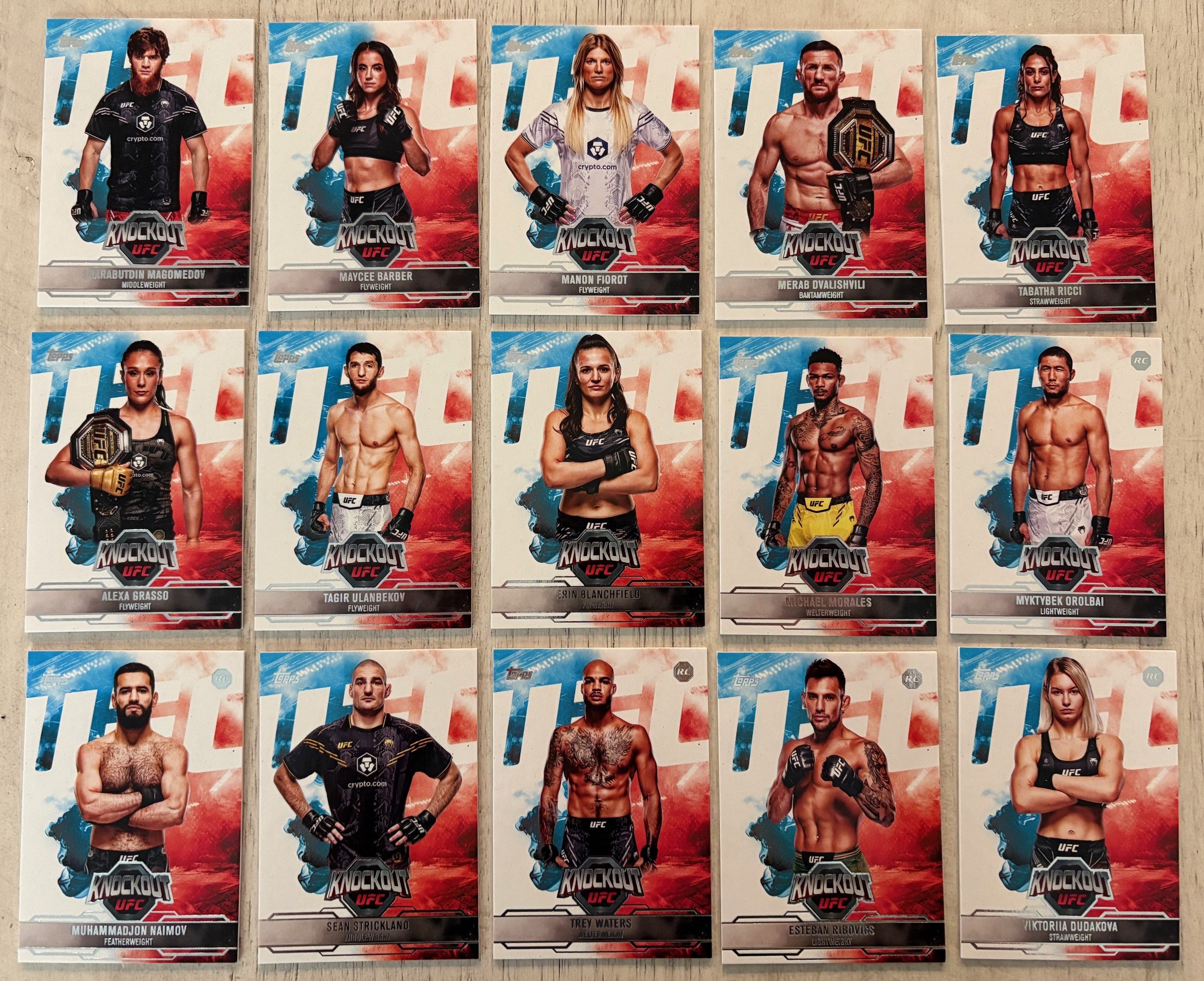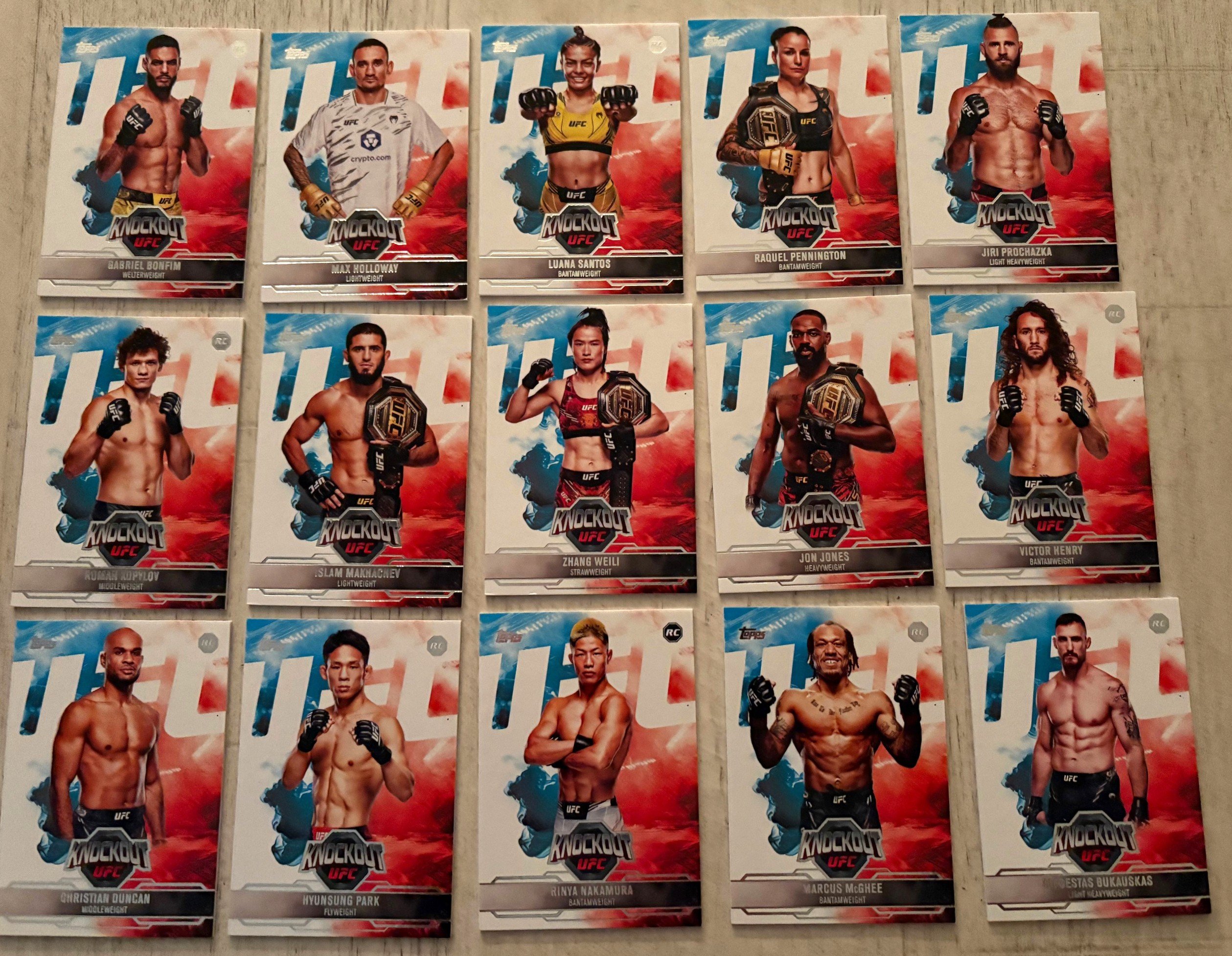 Big UFC collector here... but I focus on the older sets (IG - Huskytabby). The 2nd time around with Topps has been a bit disappointing. Perfect example is that redemption.... the mat relic wont have the event listed. Topps hasn't released event used relics since 2020. Not sure what is up with that as Fanatics has access to them. Too many silly inserts and not enough event used. Knockout was my favorite release too.