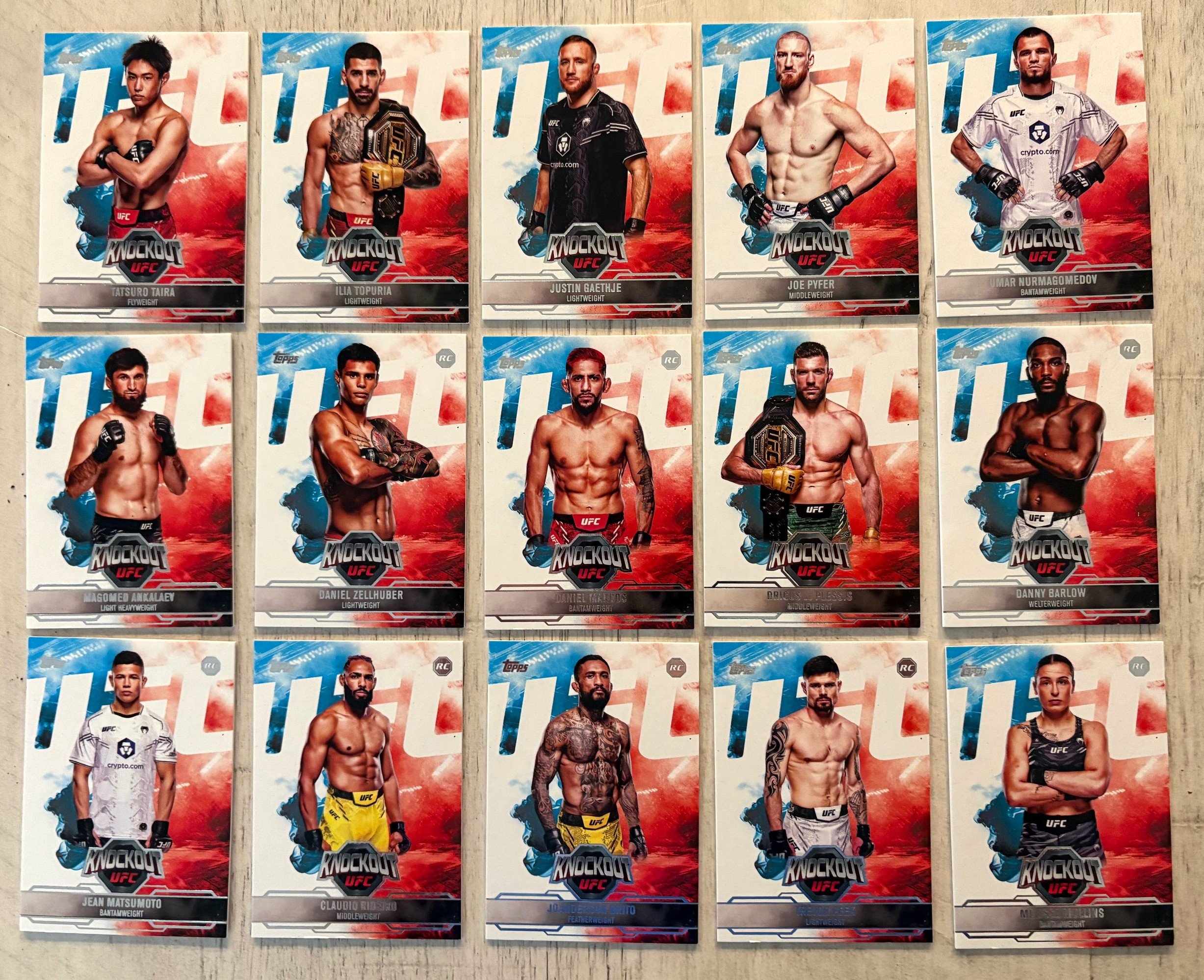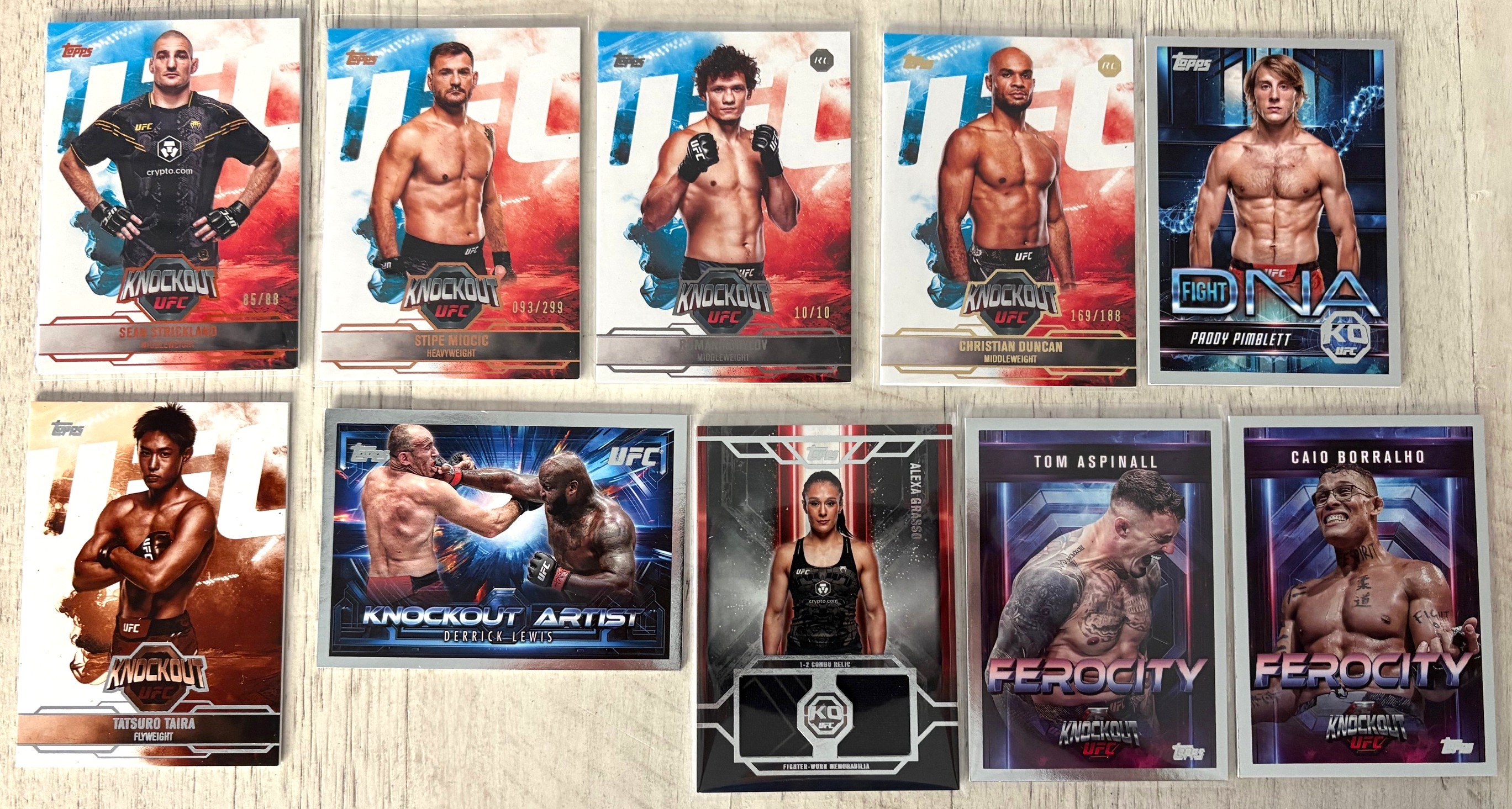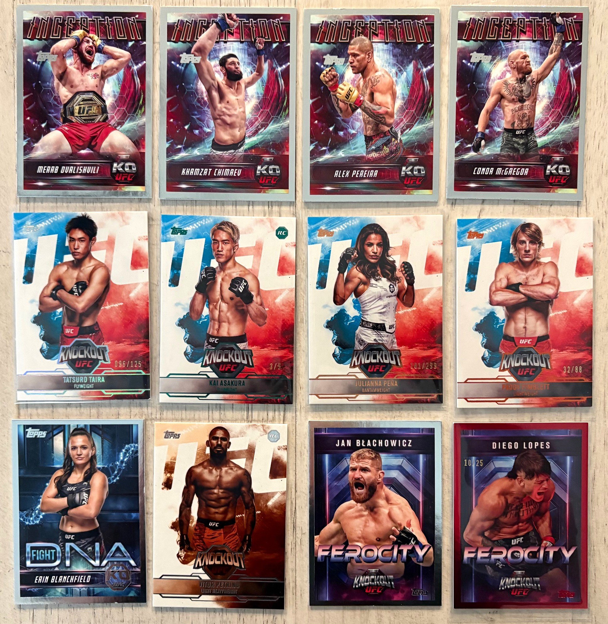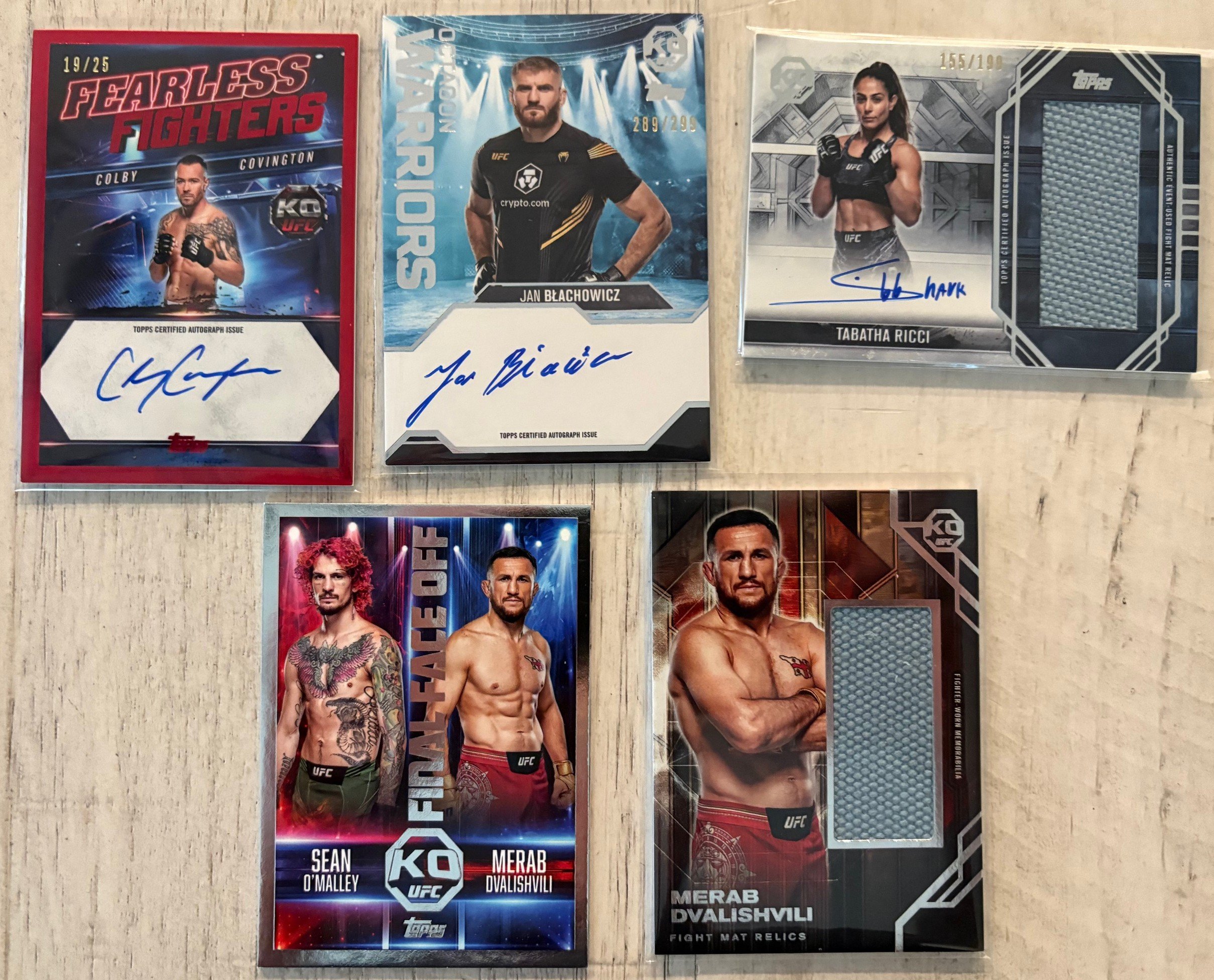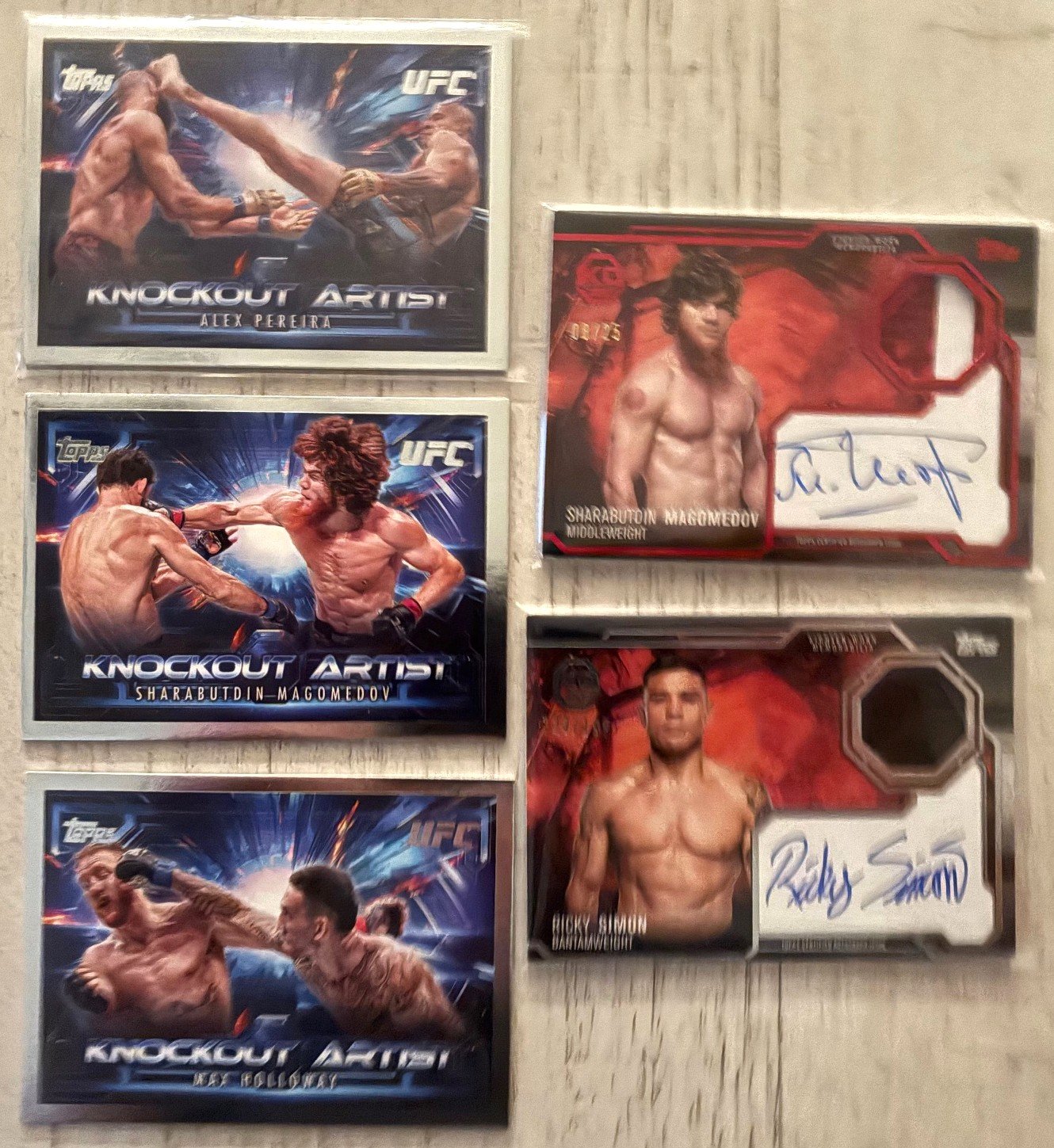 Big UFC collector here... but I focus on the older sets (IG - Huskytabby). The 2nd time around with Topps has been a bit disappointing. Perfect example is that redemption.... the mat relic wont have the event listed. Topps hasn't released event used relics since 2020. Not sure what is up with that as Fanatics has access to them. Too many silly inserts and not enough event used. Knockout was my favorite release too.