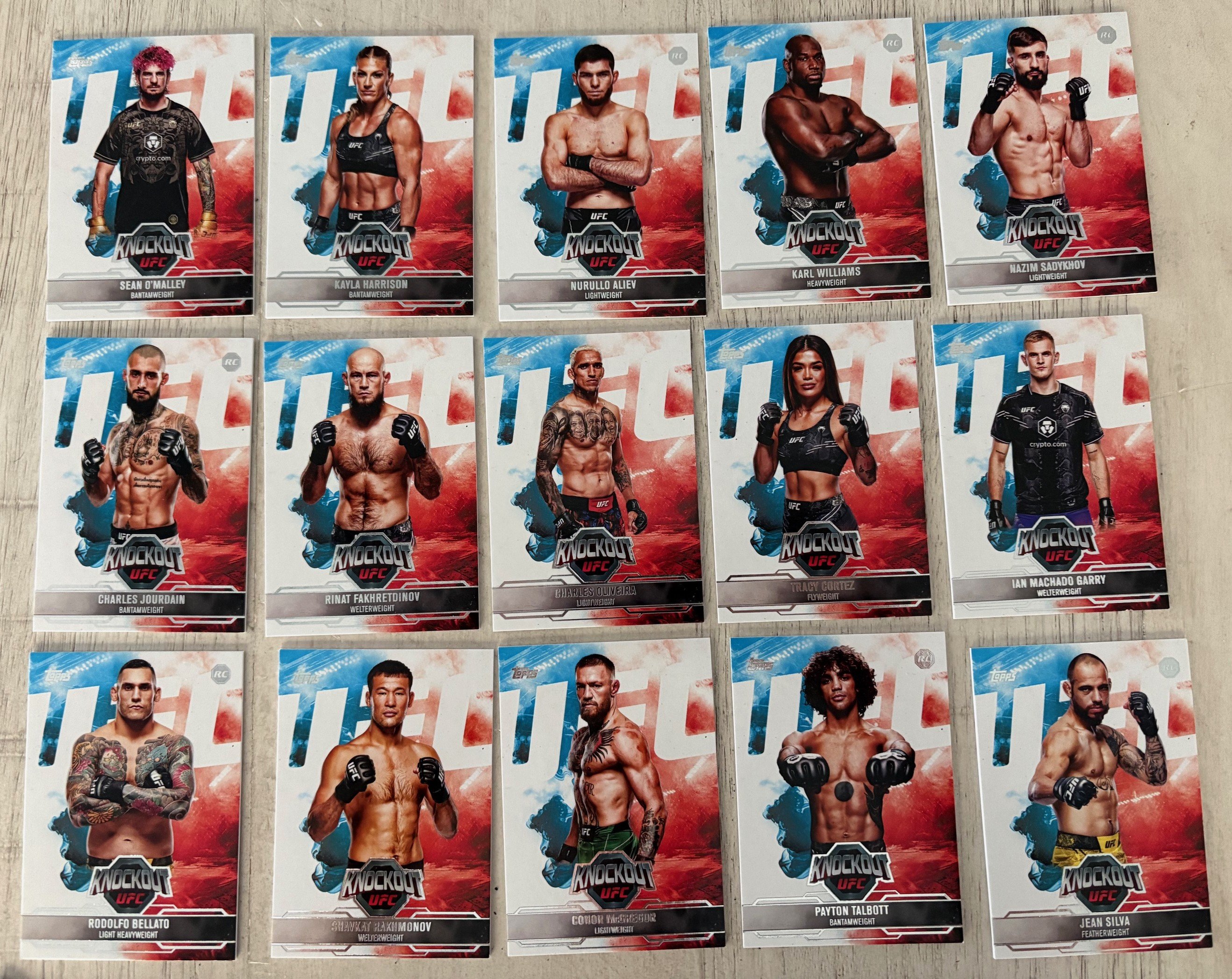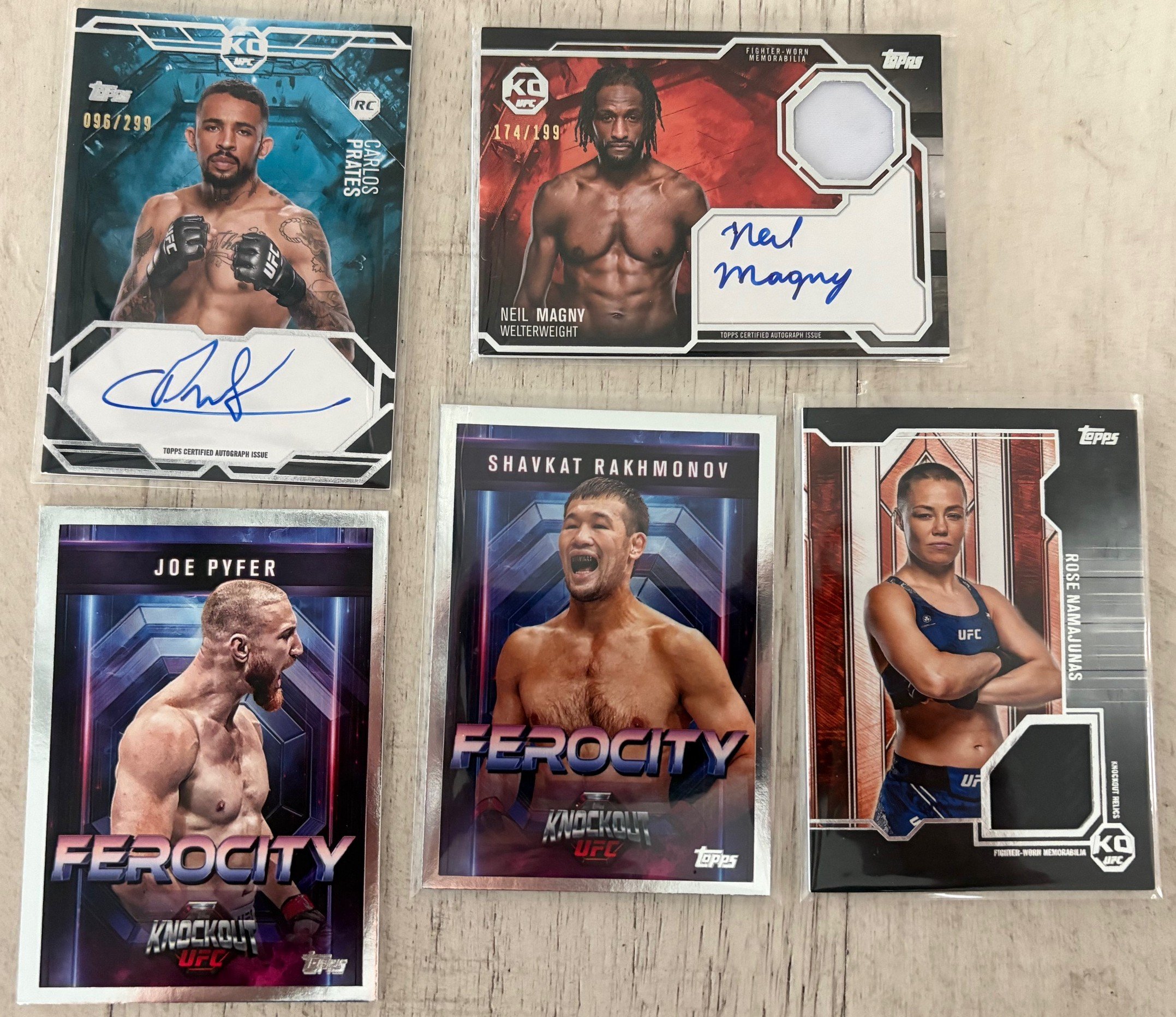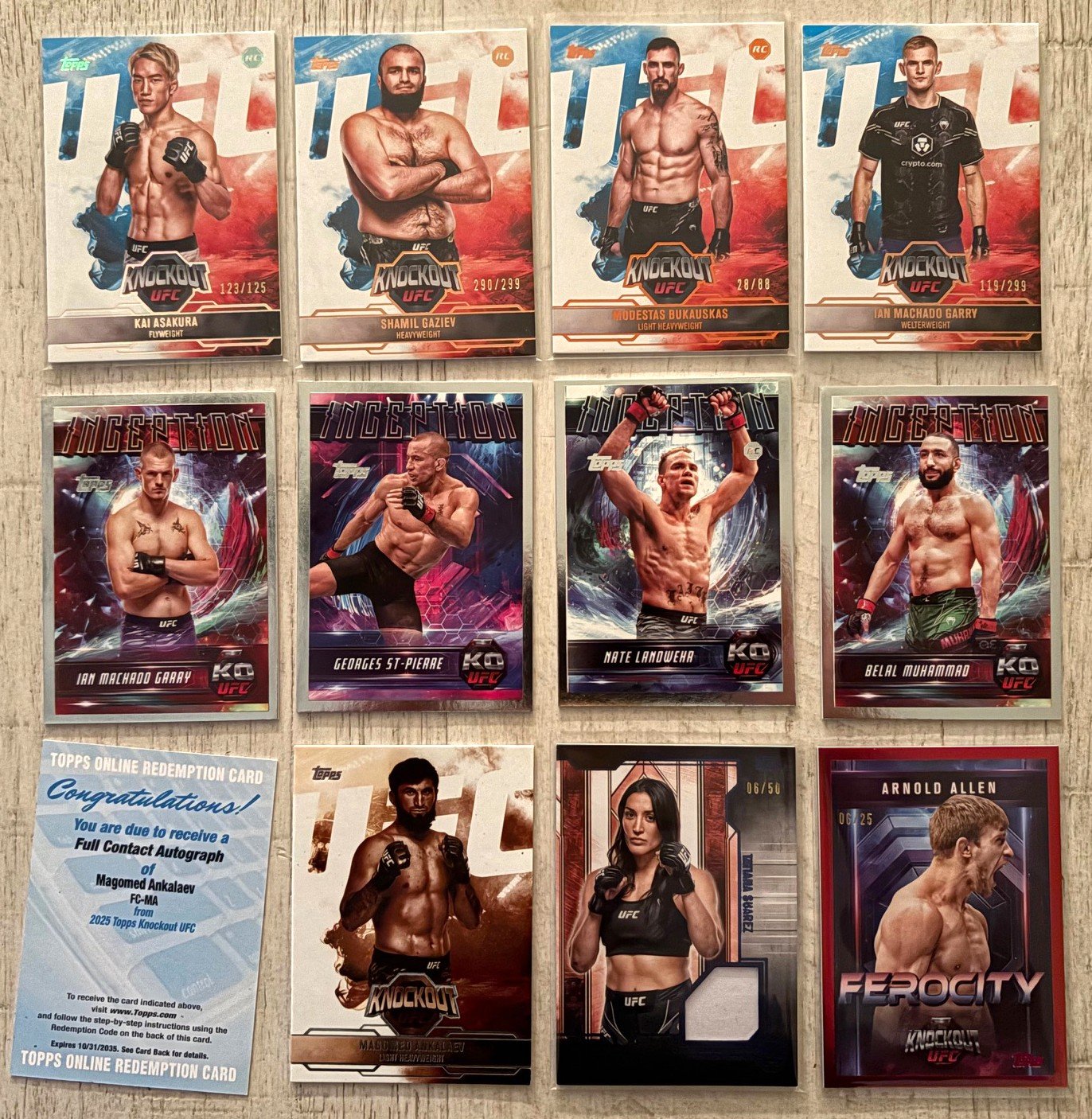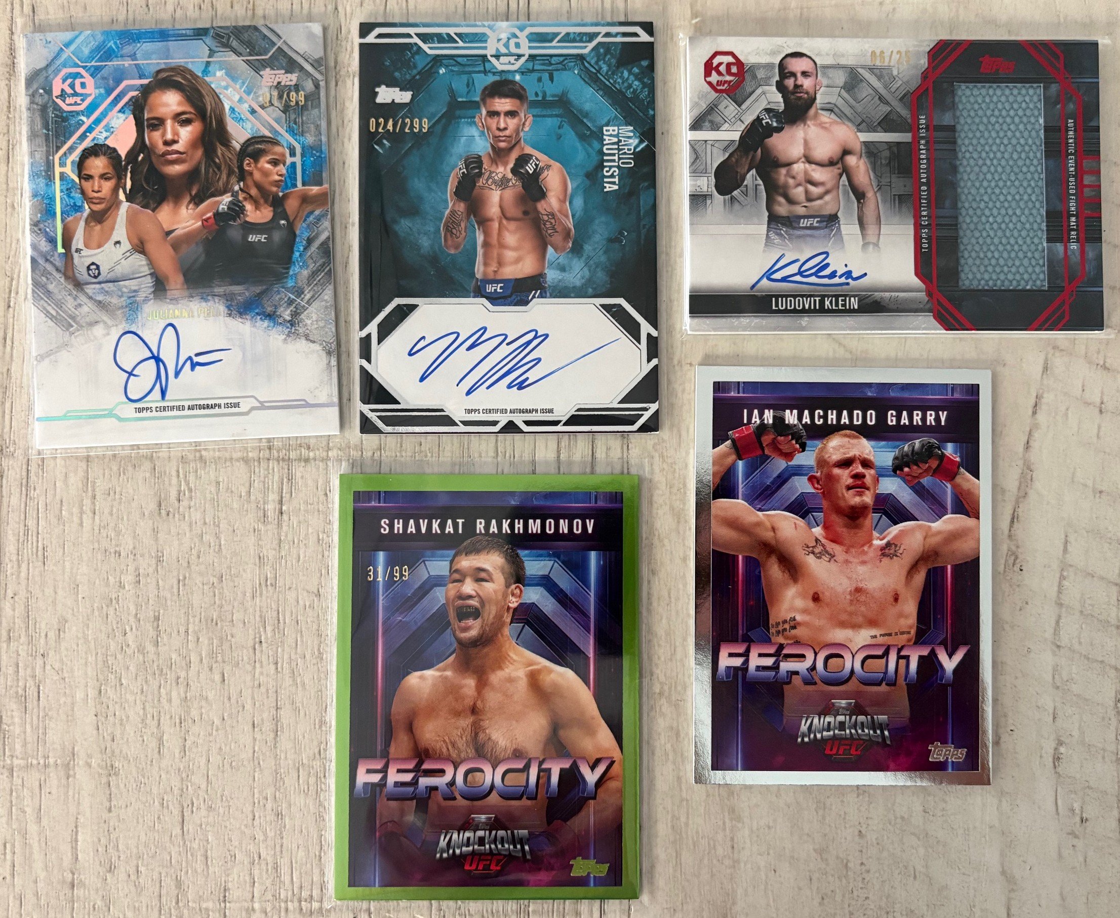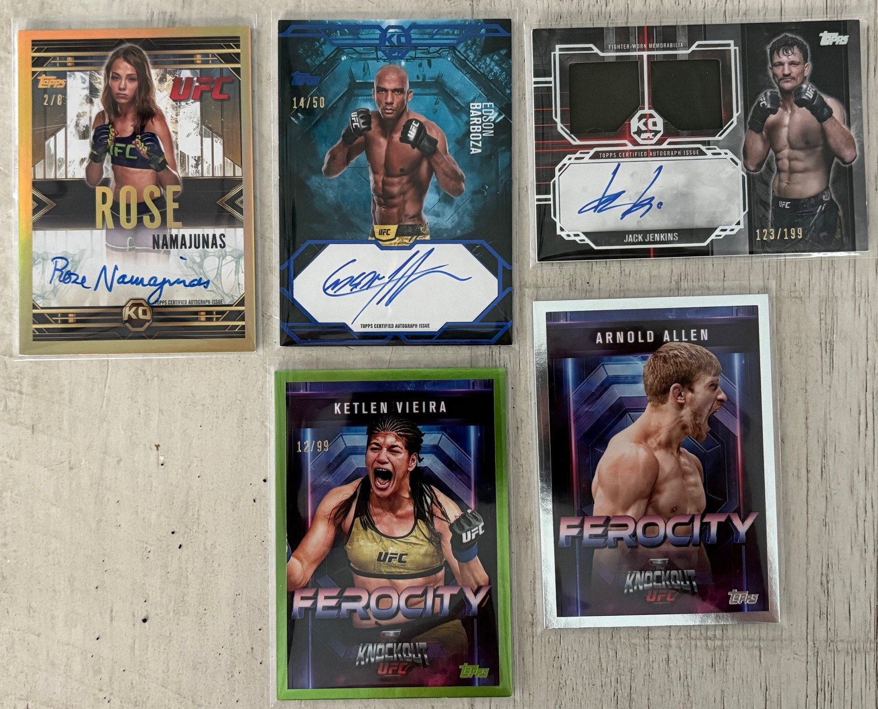 Big UFC collector here... but I focus on the older sets (IG - Huskytabby). The 2nd time around with Topps has been a bit disappointing. Perfect example is that redemption.... the mat relic wont have the event listed. Topps hasn't released event used relics since 2020. Not sure what is up with that as Fanatics has access to them. Too many silly inserts and not enough event used. Knockout was my favorite release too.