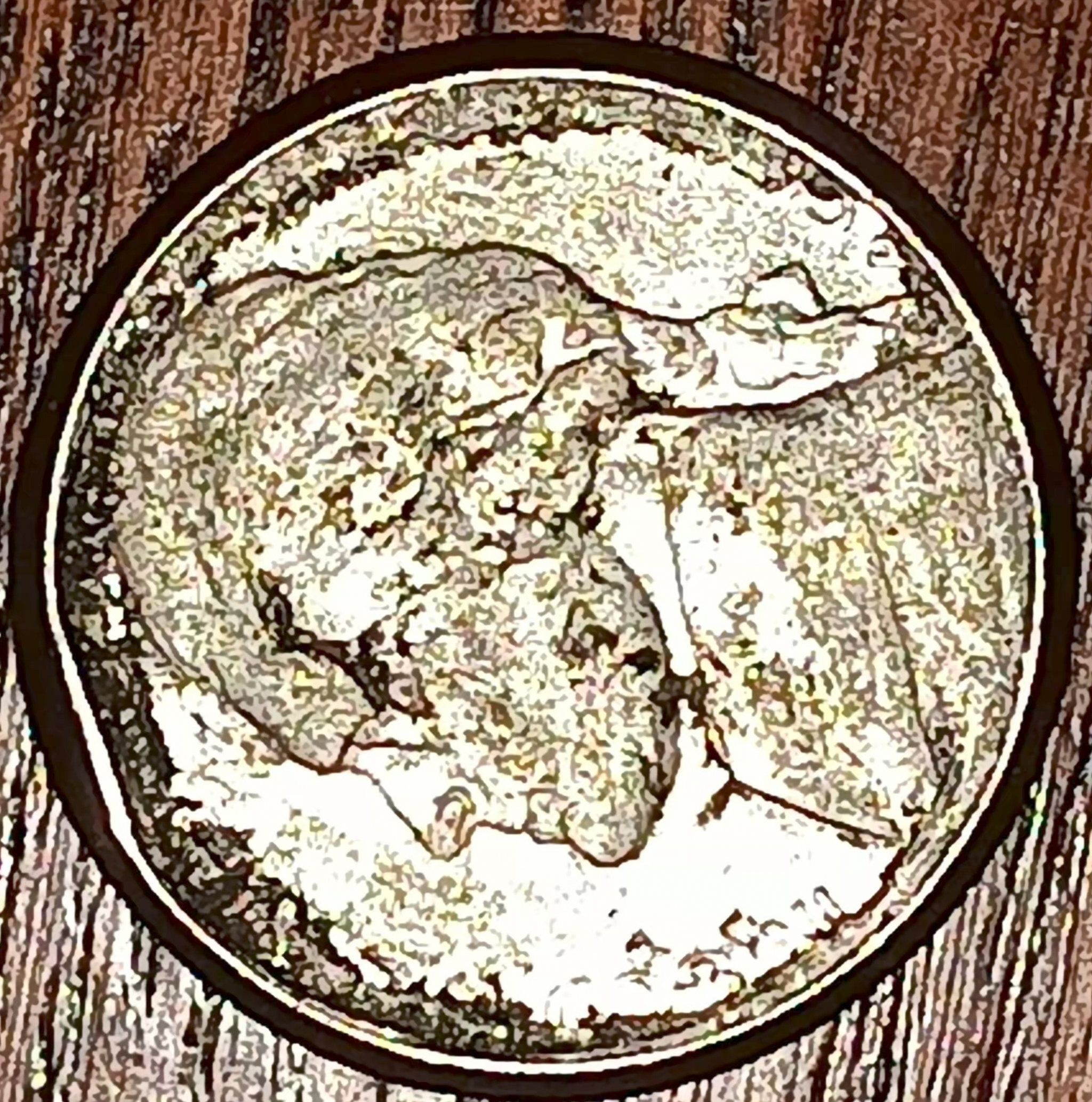 • I have failed at all attempts to take a photo and after a closer look, it seems to have the same issues on both front and back. There is some sort of residue on the face of both obverse and reverse, right around the edge. I imagine I will need to take it to an expert to it can be examined. Curious!