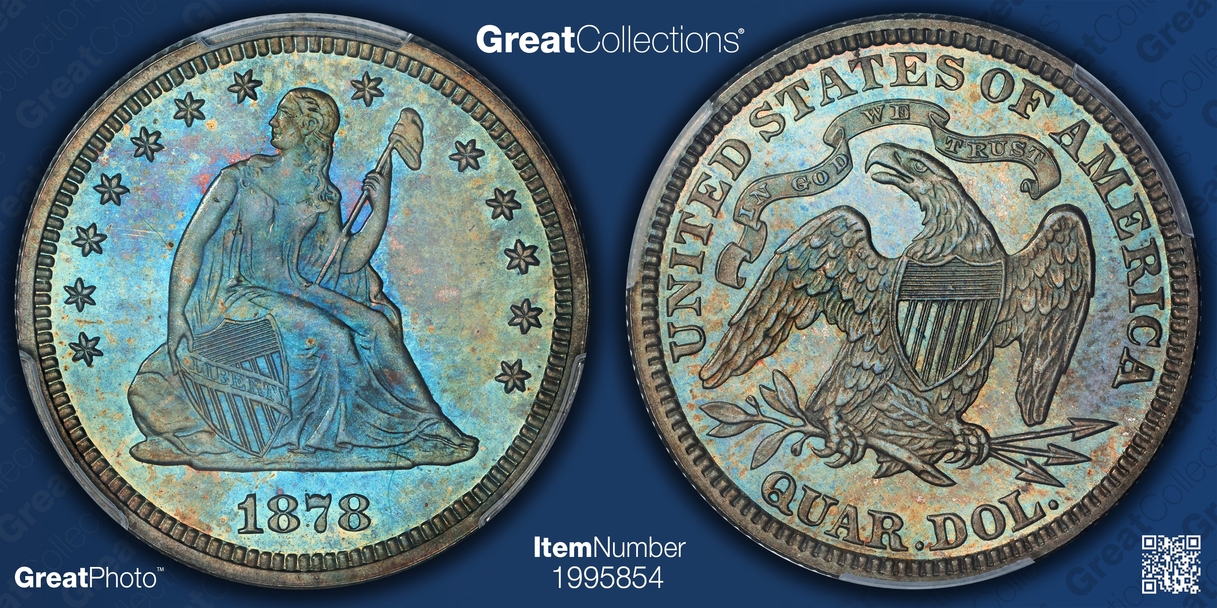 https://greatcollections.com/Coin/1995854/1878-Seated-Liberty-Quarter-PCGS-Proof-65-CAC-Green-Toned