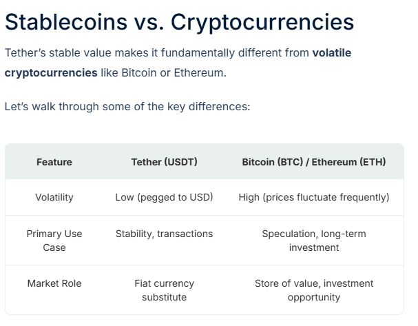 Tether (USDT) is a stablecoin pegged to the US dollar. It's the largest stablecoin by market cap but has faced controversy due to its lack of transparency and potential for failure. Tether was fined in 2021 for making false claims about its reserves. My jury is still out on this one. Needs more research.