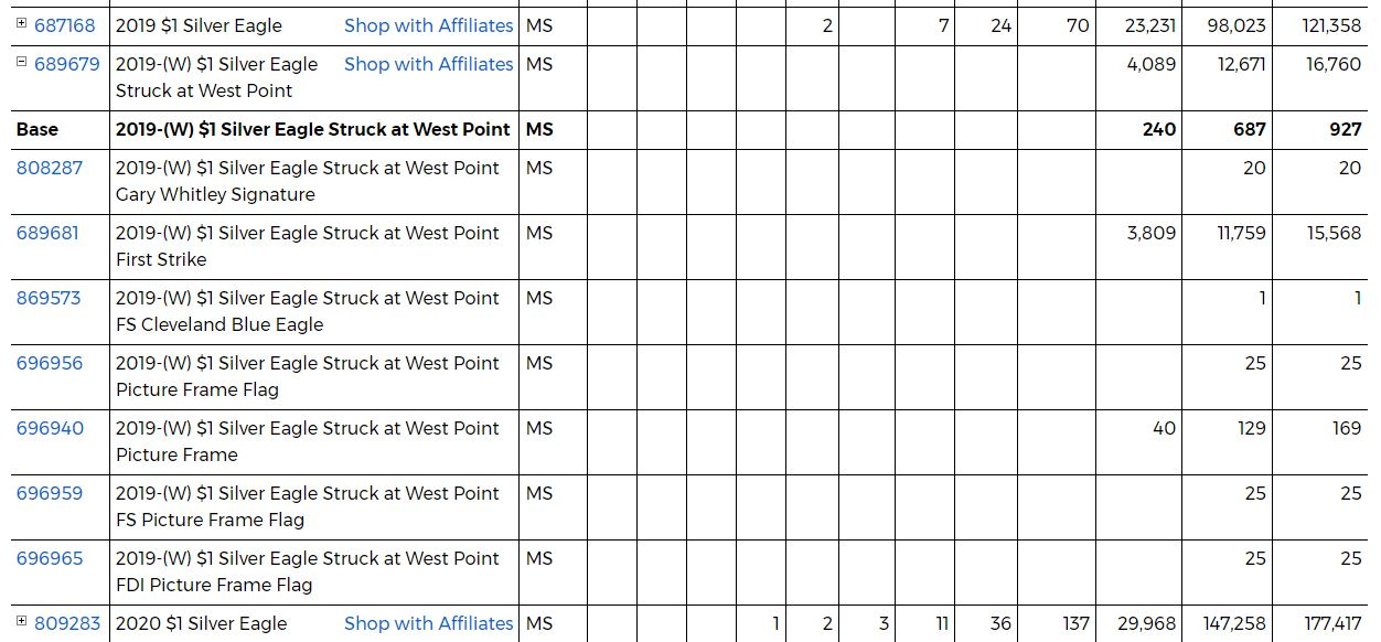 Referencing my 2019-(W) PCGS coin 36736193, which has the below PCGS number.