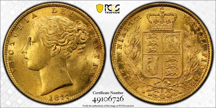 Australia: 1877-S gold “Shield” sovereign of Queen Victoria, from the RMS Duoro shipwreck