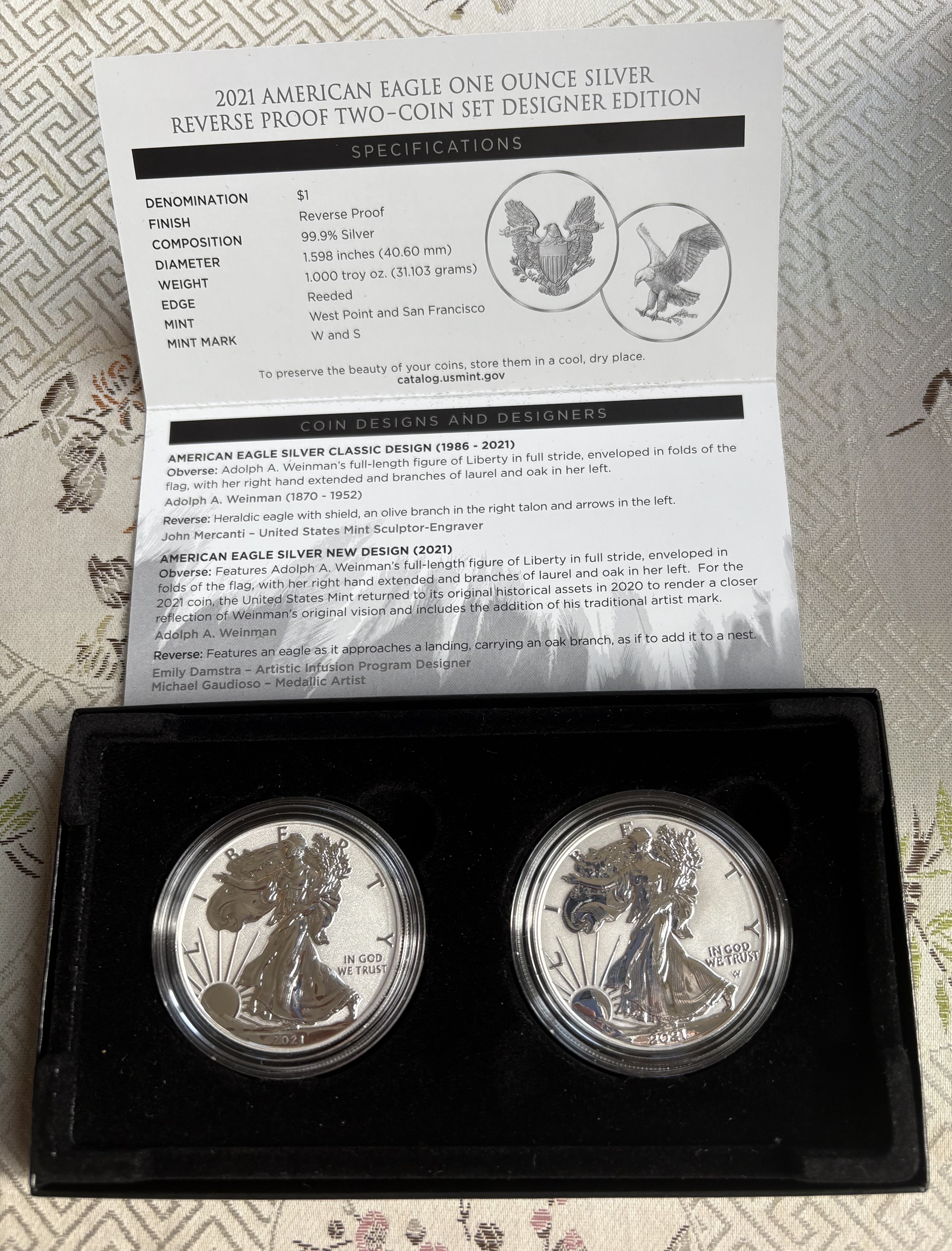 item 2: American Eagle 2021 One Ounce Silver Reverse Proof Two-Coin Set Designer Edition