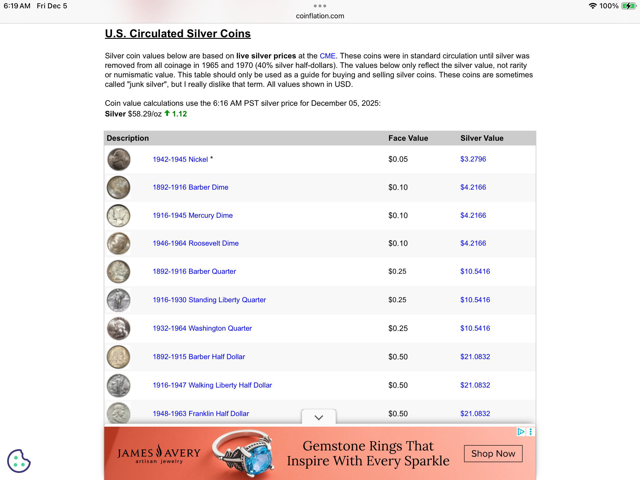 • Current Melt Value: 9.286 * 58.29=541.281 (based on silver at $58.29 per oz)