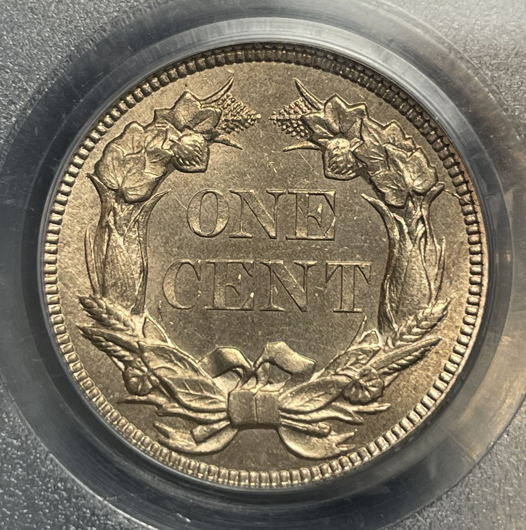Reverse T1-O: This is cataloged as a reworked die and is similar to all the other reworked dies found for the 1858 Small letters dies. It is a 2-star variety and with the High Leaves reverse should get a good premium (MS65 $7,500 - $10,000). The original listing for S2 was delisted as a duplicate of S1, in an early die state."
