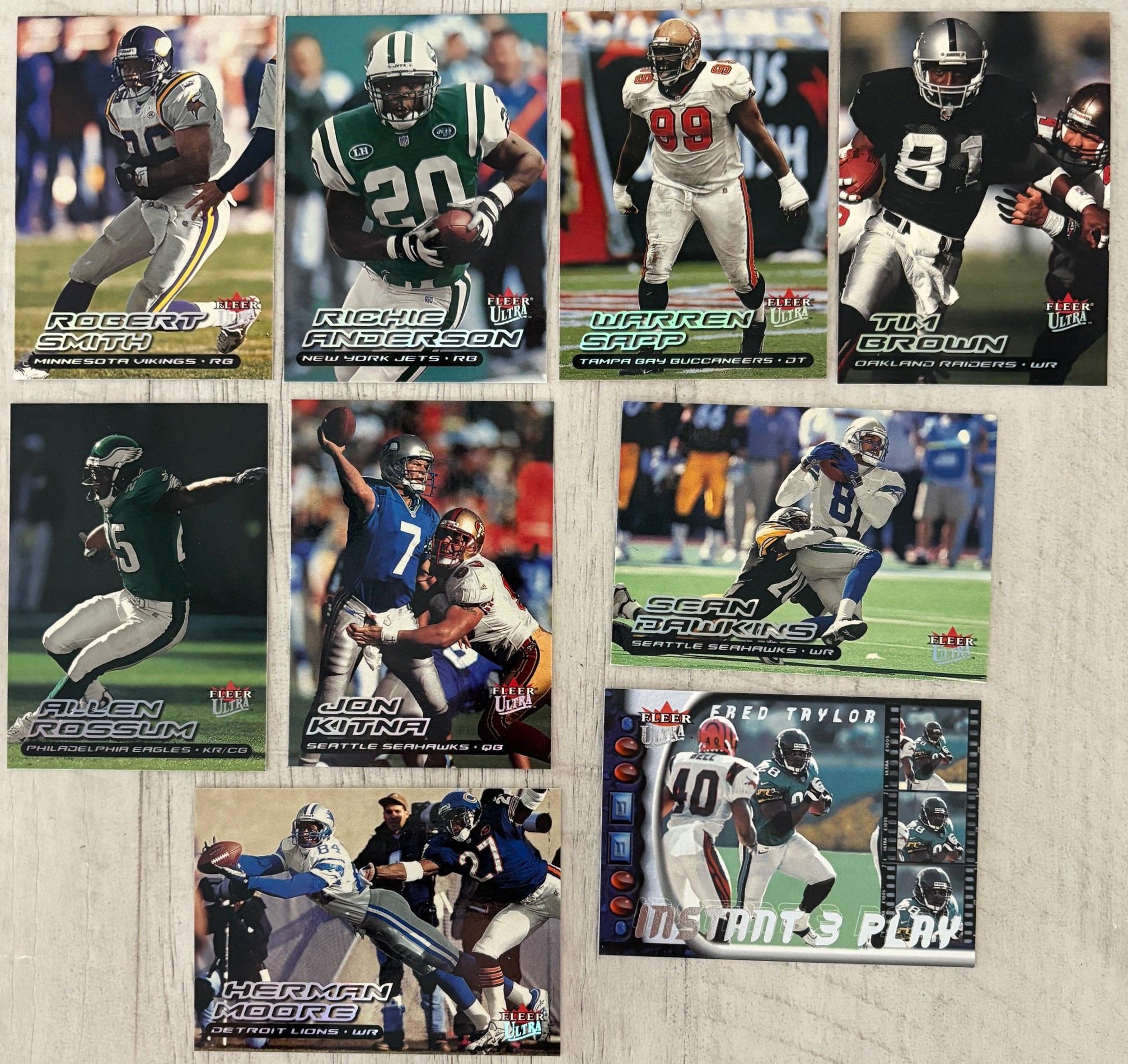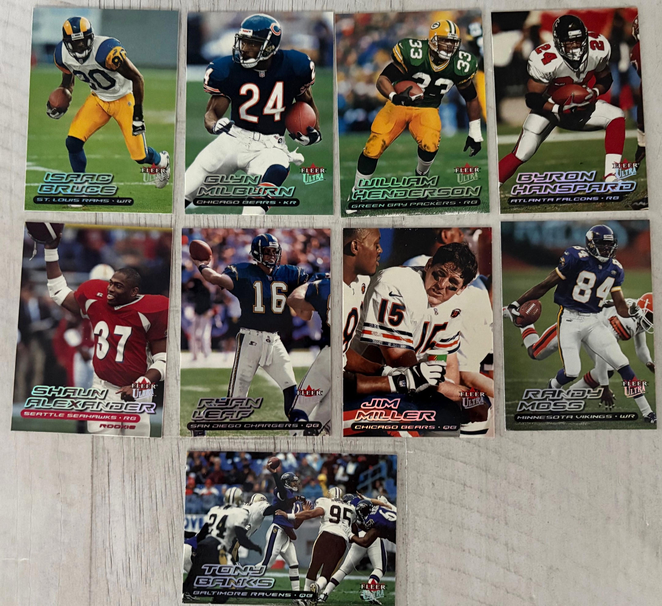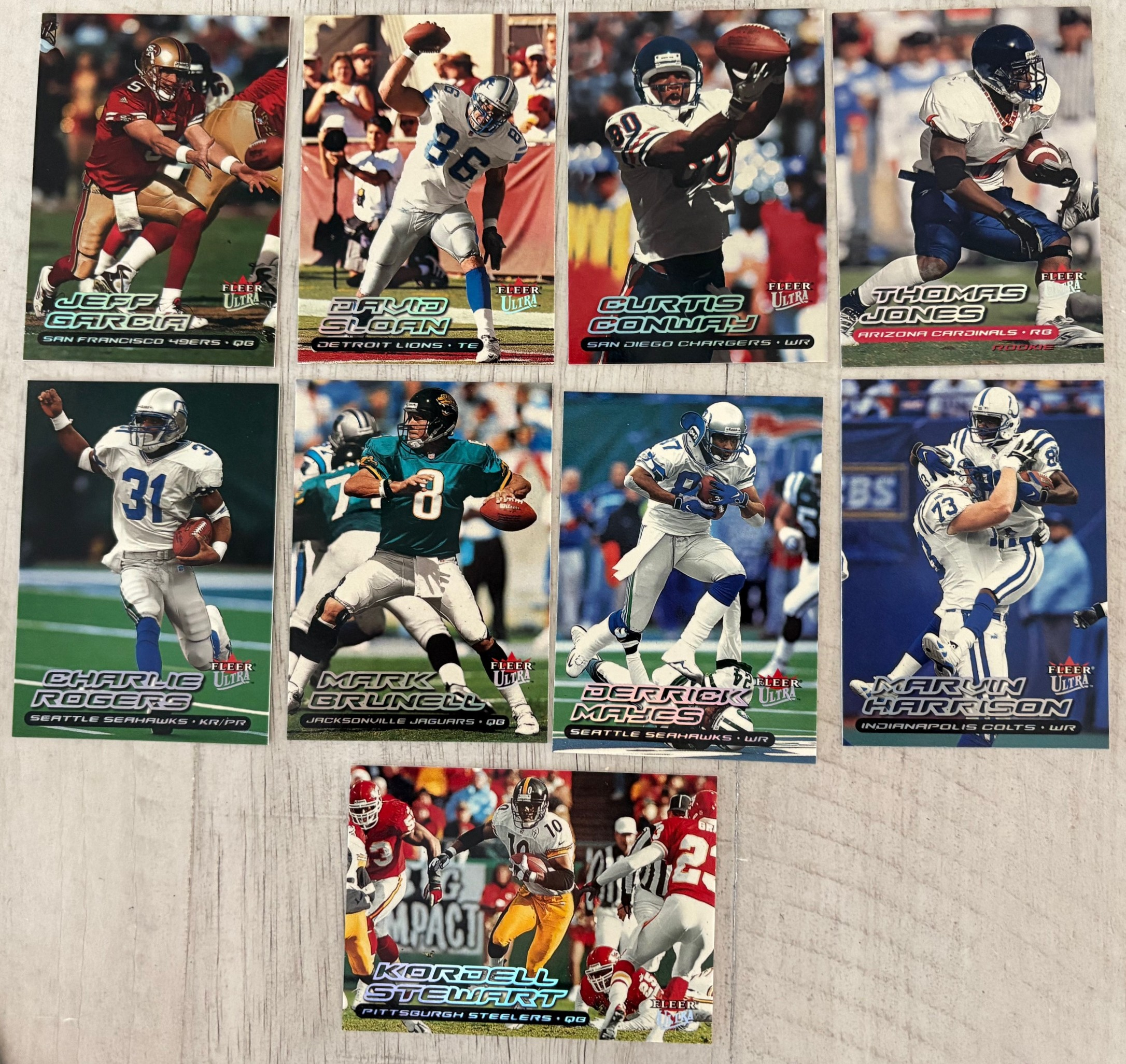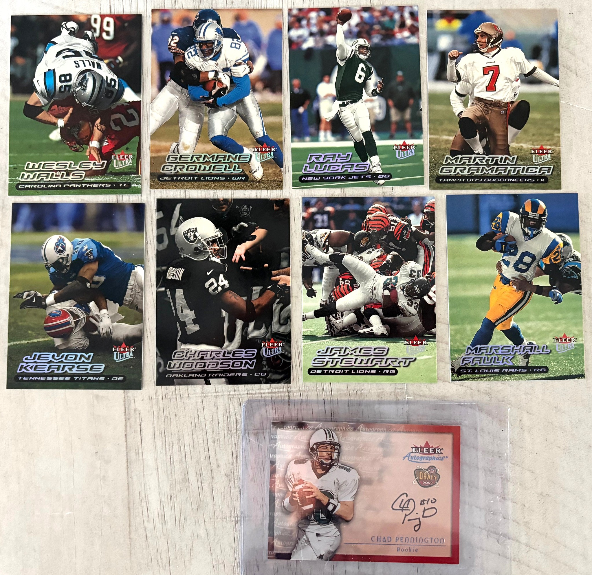 Autographics cards in 2000 Fleer Ultra Football were not inserted directly into Ultra packs. Instead, they were part of a cross-brand insert program by Fleer, meaning Autographics cards were seeded across multiple Fleer products (like Ultra, Tradition, Focus, Mystique, etc.), typically at 1:288 packs (about one per 12 boxes)