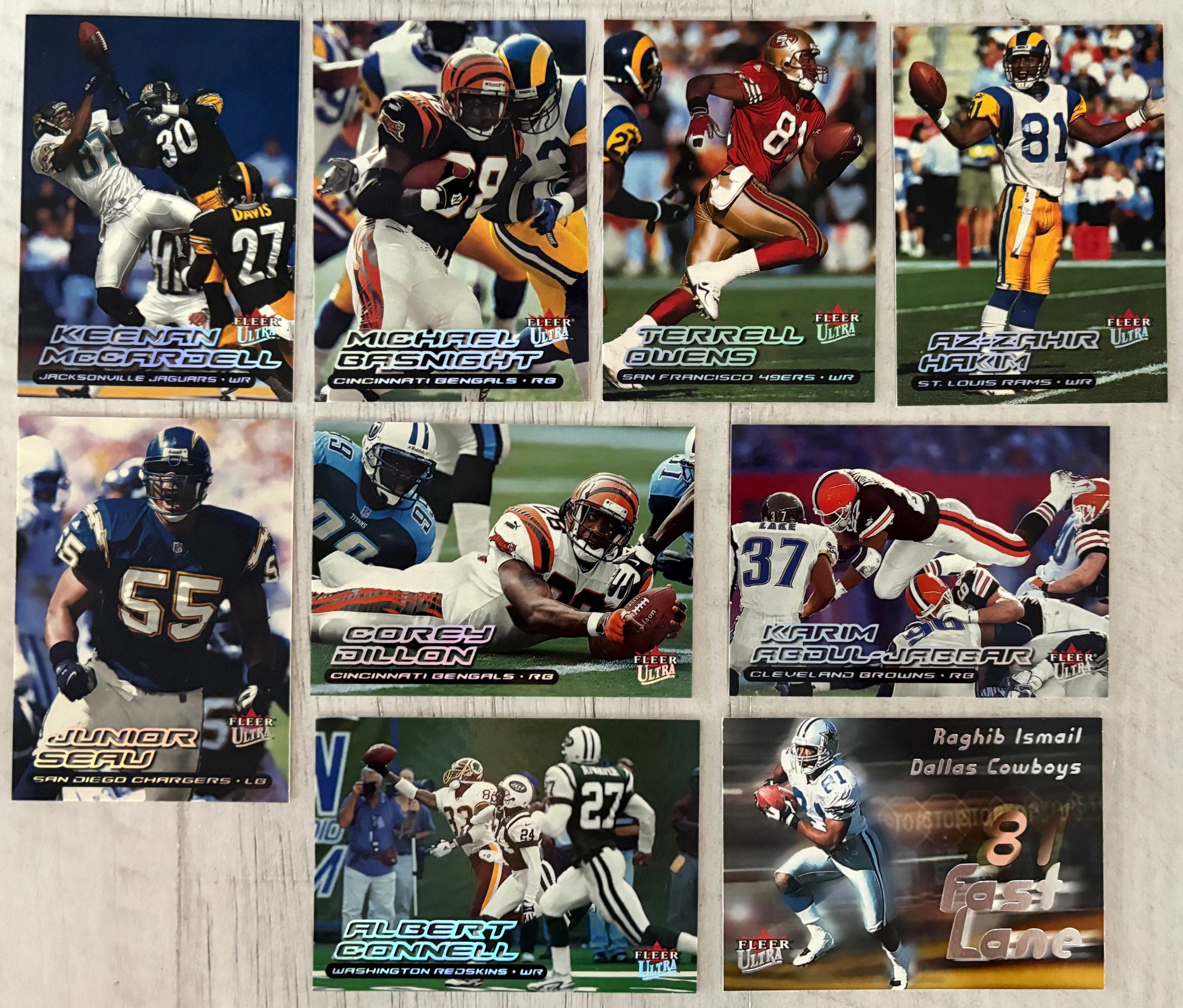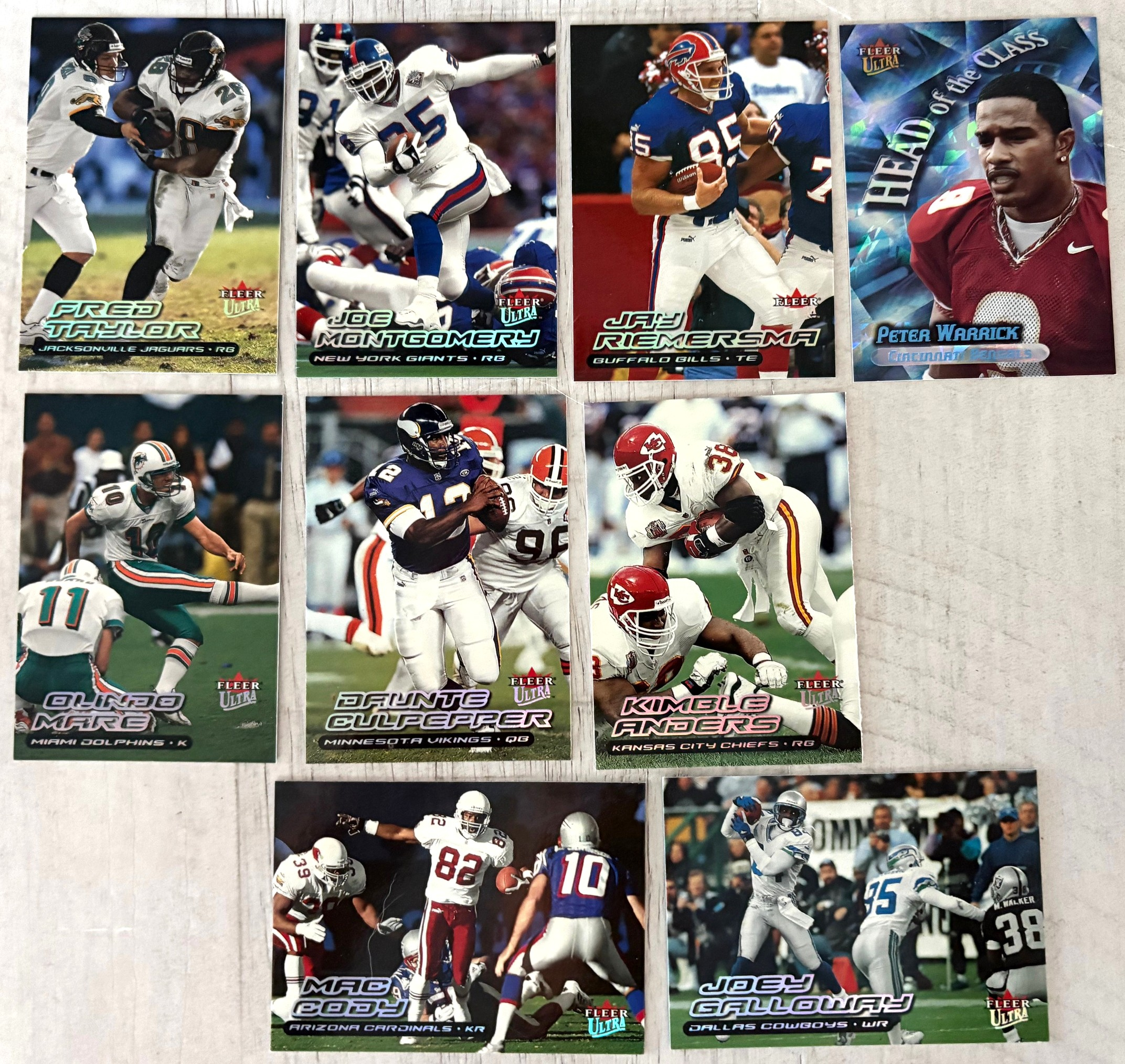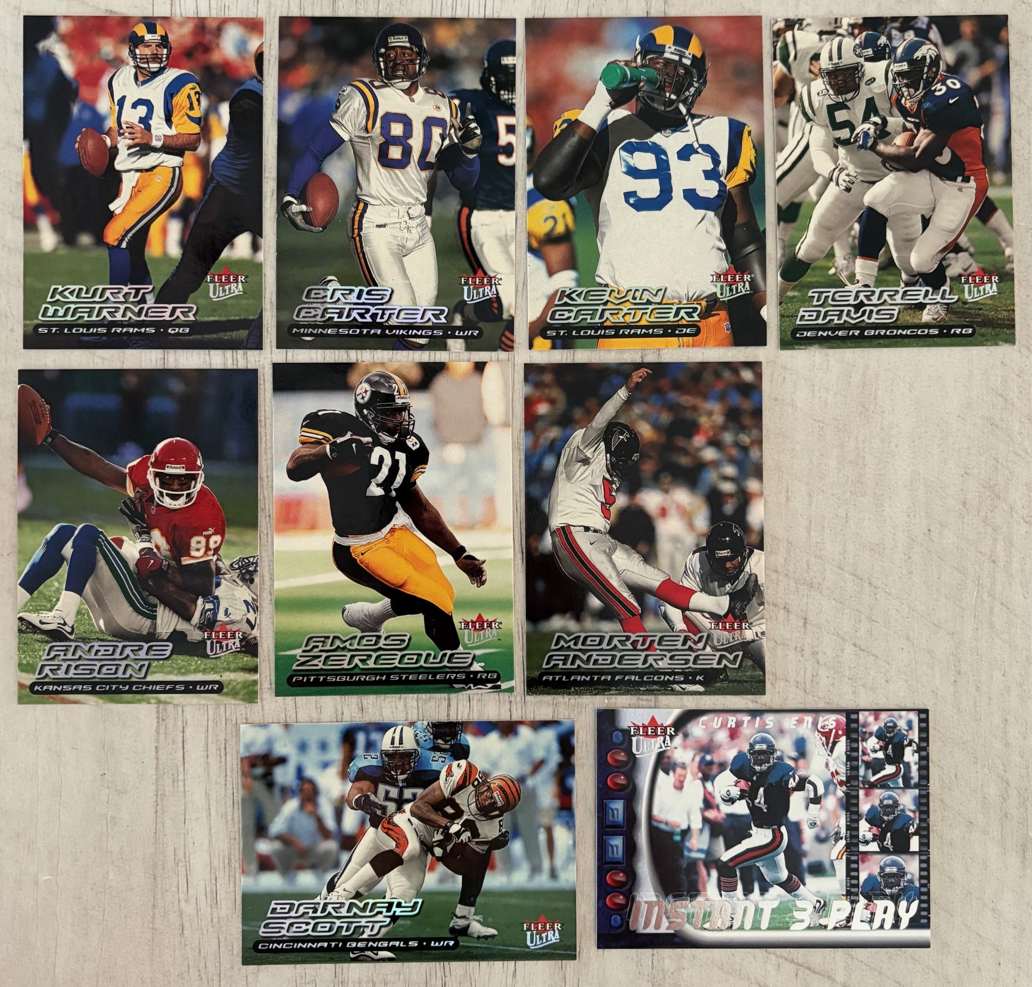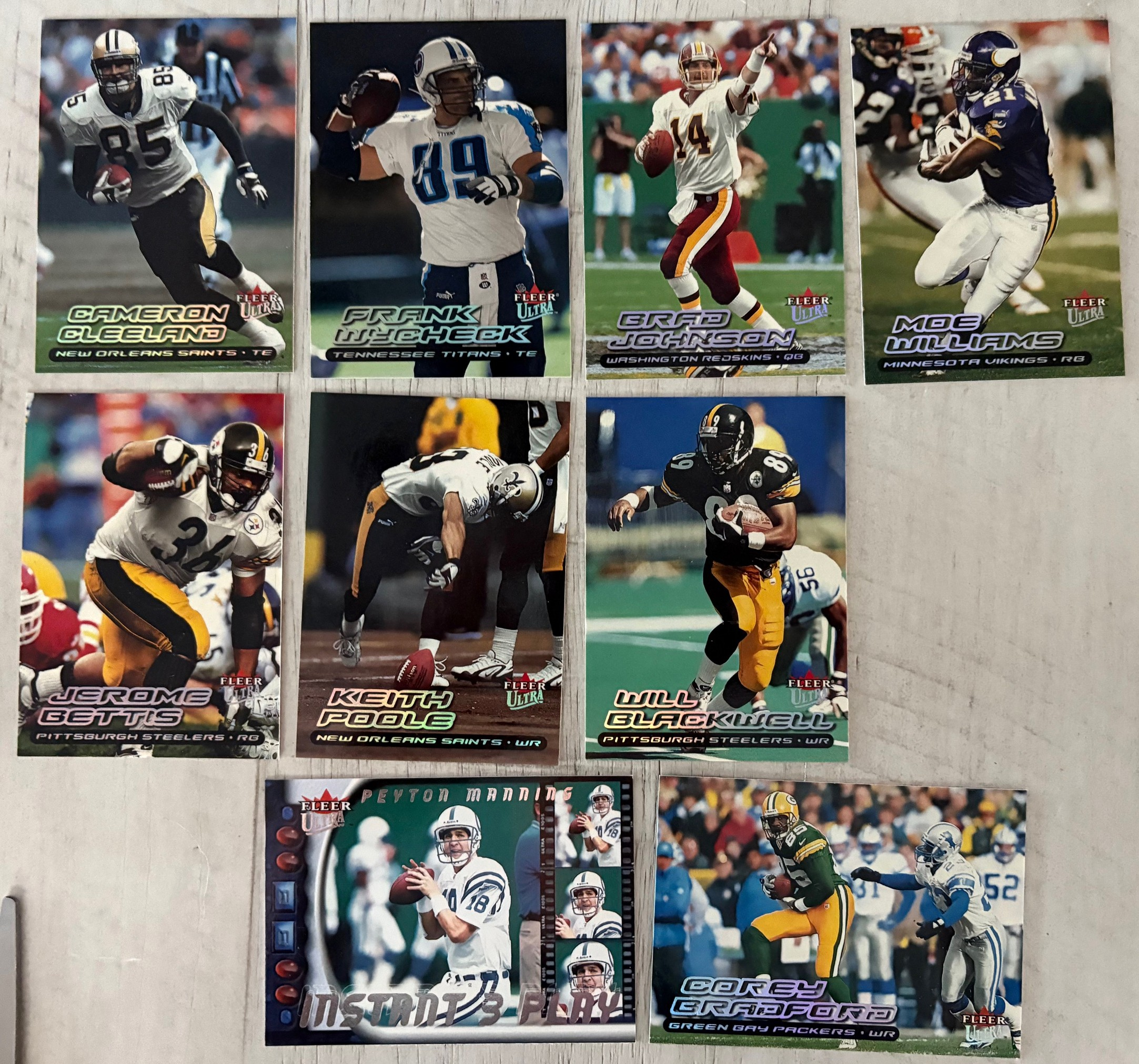 Autographics cards in 2000 Fleer Ultra Football were not inserted directly into Ultra packs. Instead, they were part of a cross-brand insert program by Fleer, meaning Autographics cards were seeded across multiple Fleer products (like Ultra, Tradition, Focus, Mystique, etc.), typically at 1:288 packs (about one per 12 boxes)