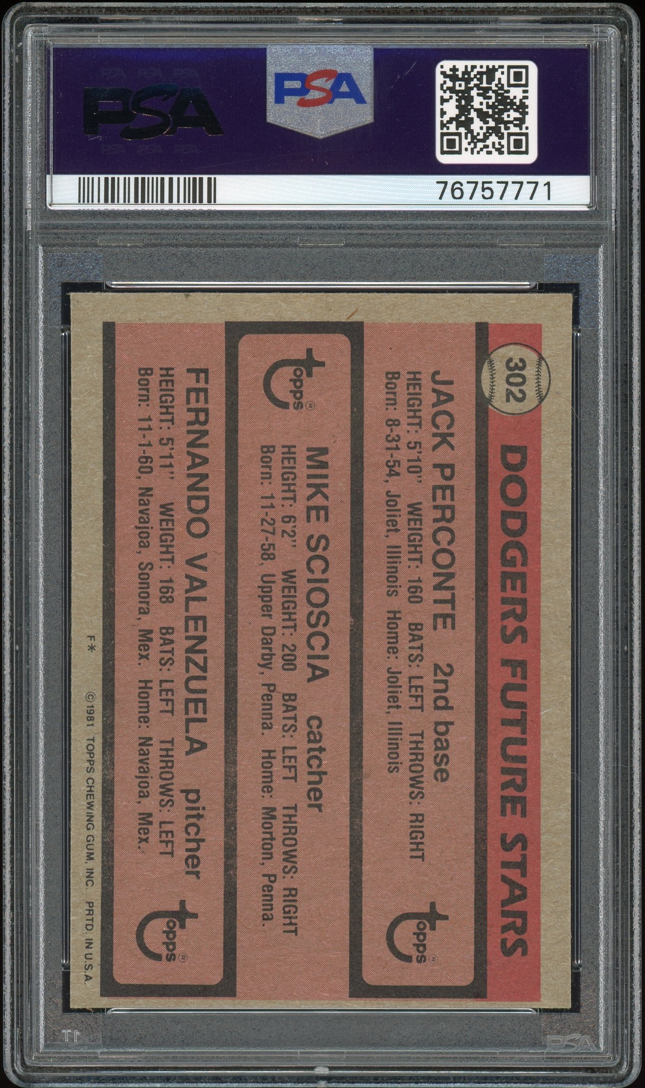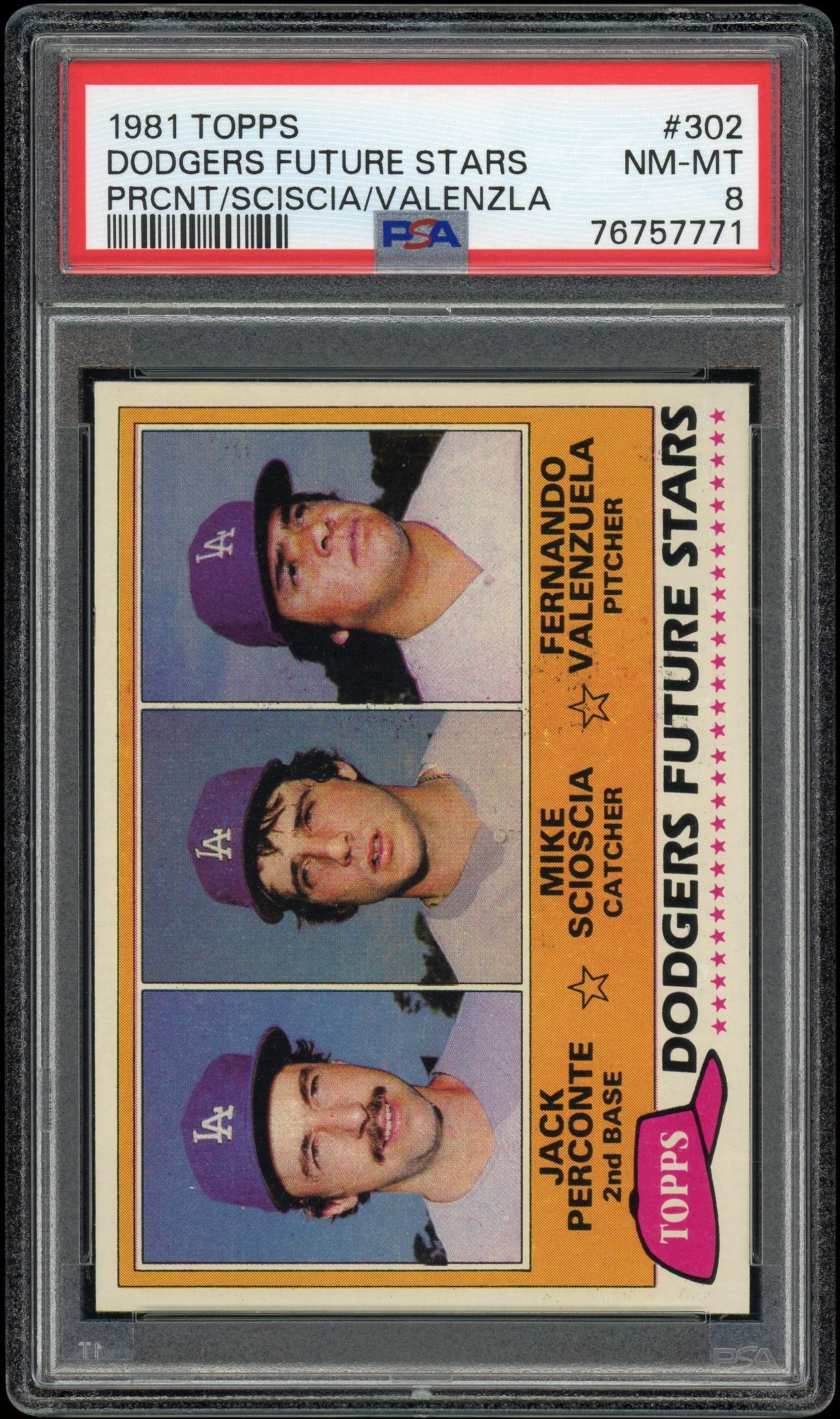 52 09192584 1981 TOPPS 302 DODGERS FUTURE STAR PERCNTE/SCIOSCA/VALNZUELA 9