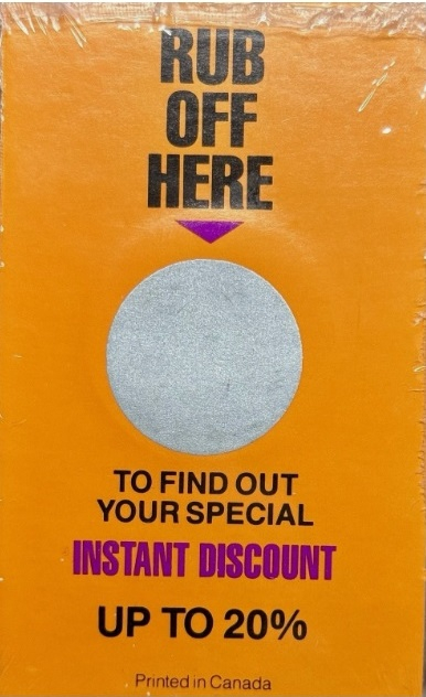 — Not earlier (promotional scratch-offs were uncommon before the mid-70s)