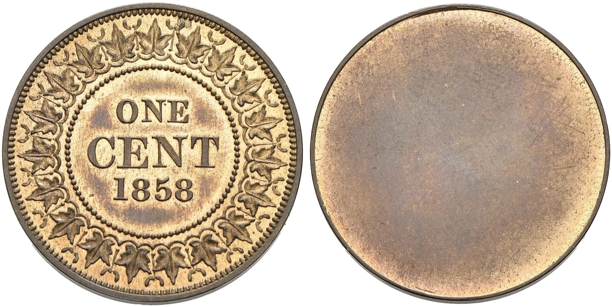 Uniface Canada One Cent Pattern, struck in 1857, probably six known. NGC SP-65 Brown. Photos from Sincona AG.