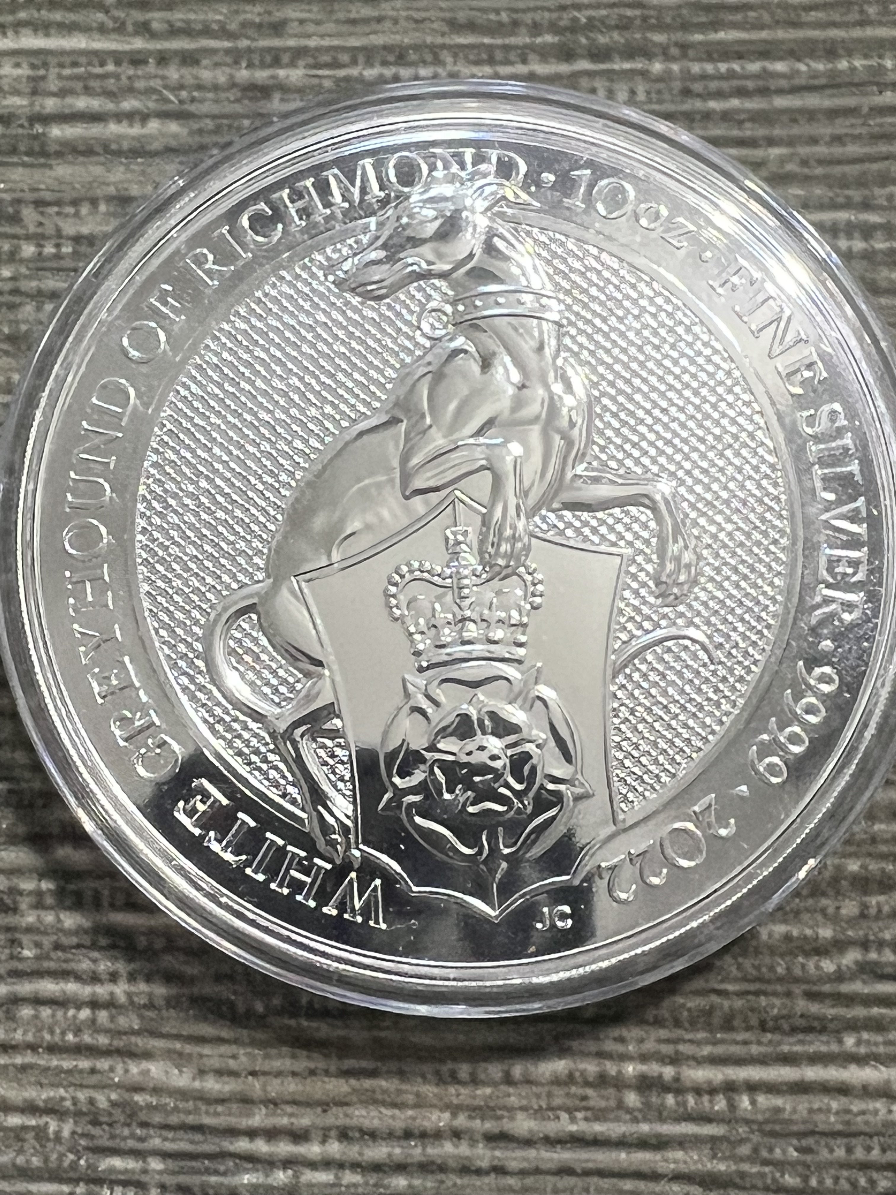 2022 10 oz .9999 Silver Queen's Beasts The White Greyhound - Great Buy!!