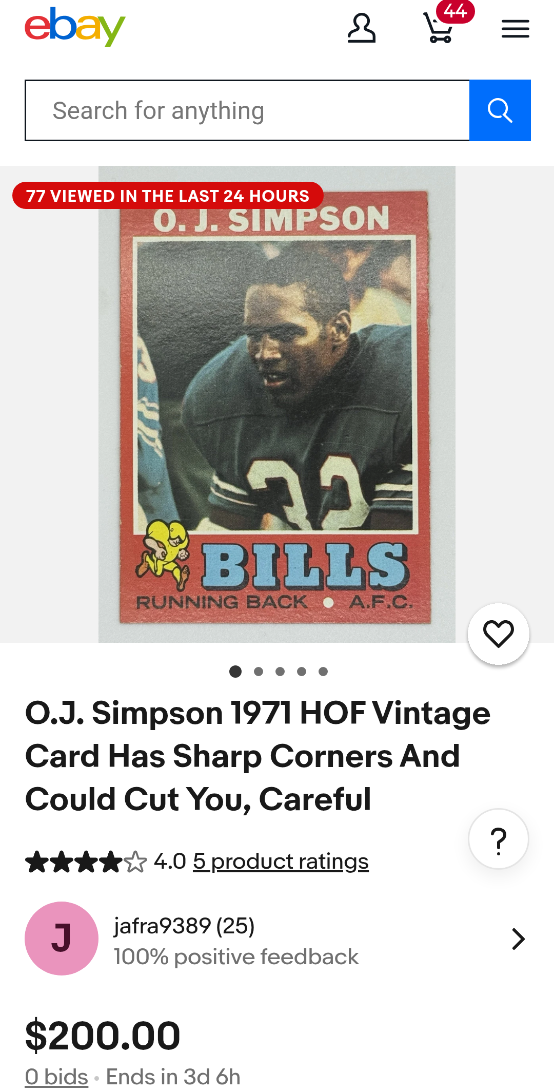 I follow and buy from Greg like it's my religion. We've been acquainted for a very long time. I was simply poking fun at the OJ auction because of the title, not looking for one specifically. But, I did receive some dynamite 1974 Topps Baseball cards from GMC today. Were those your consignments? These cards are awesome, I want more. Thanks.