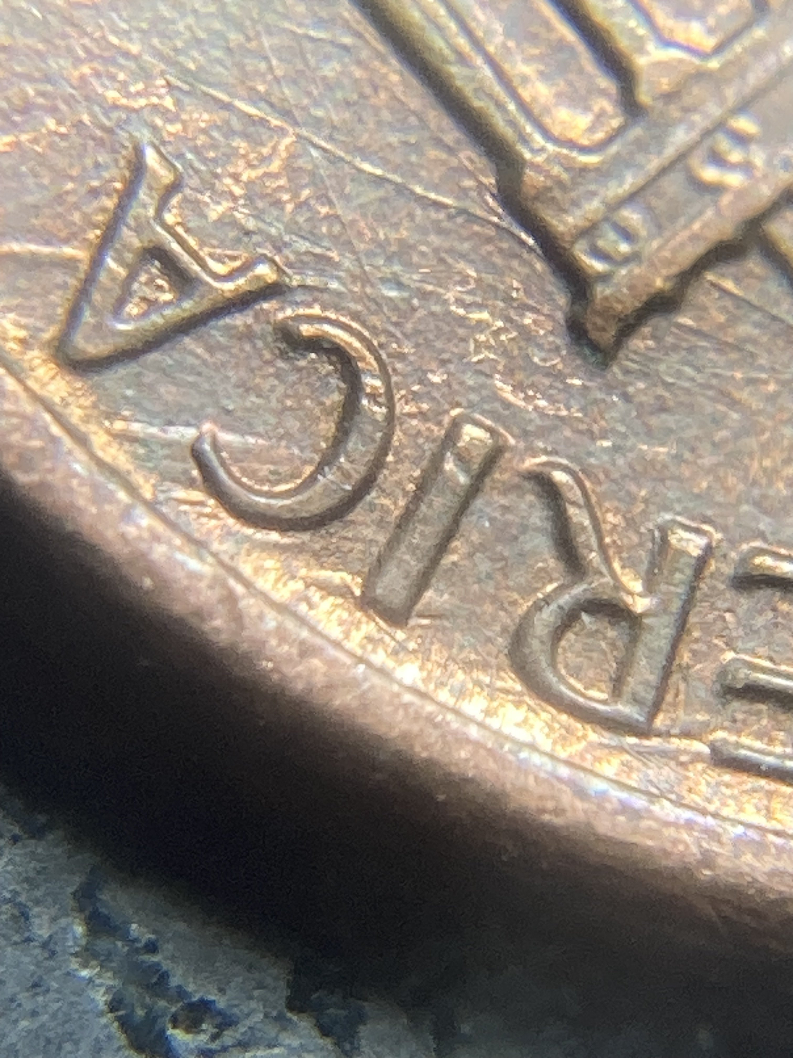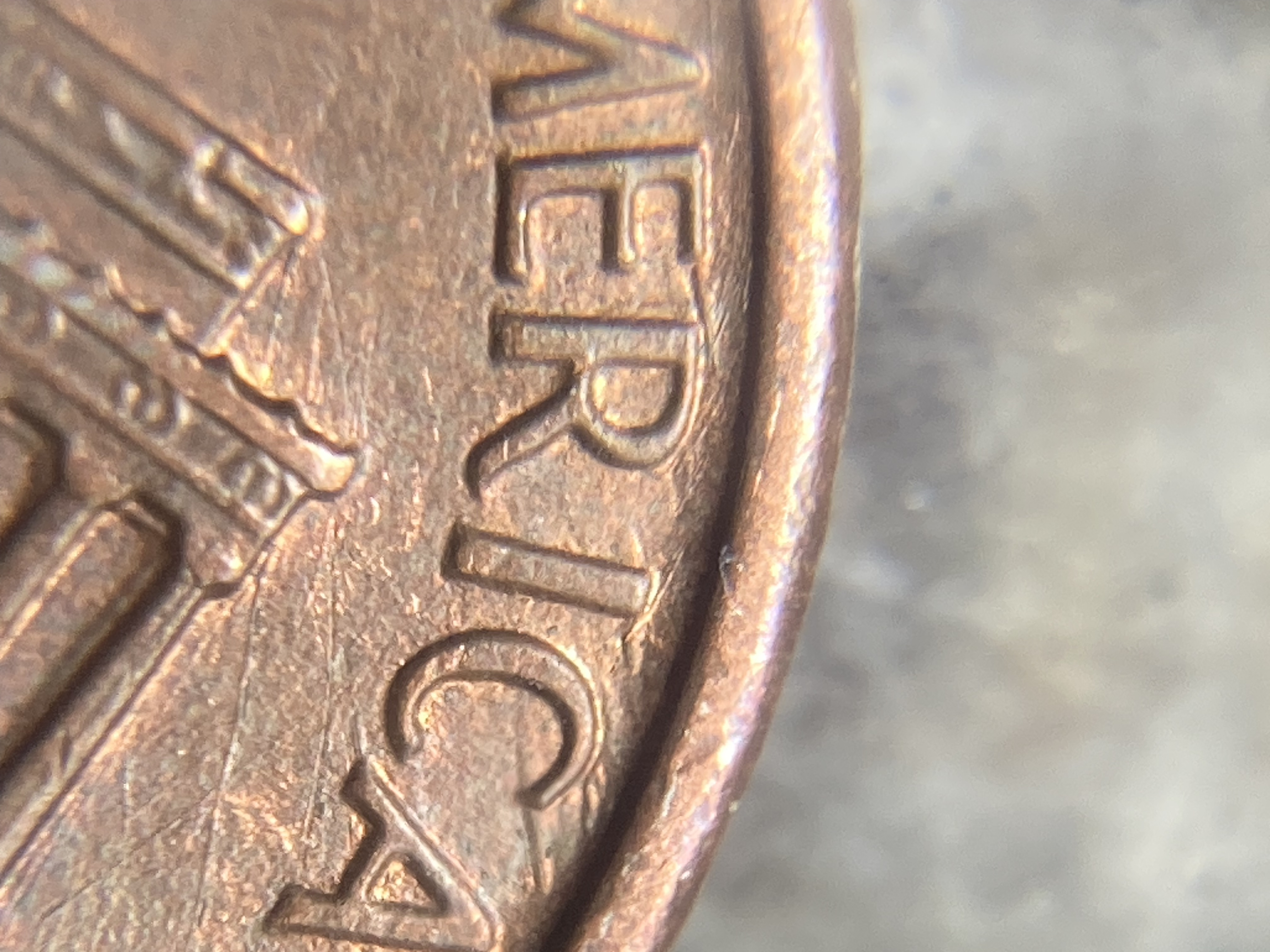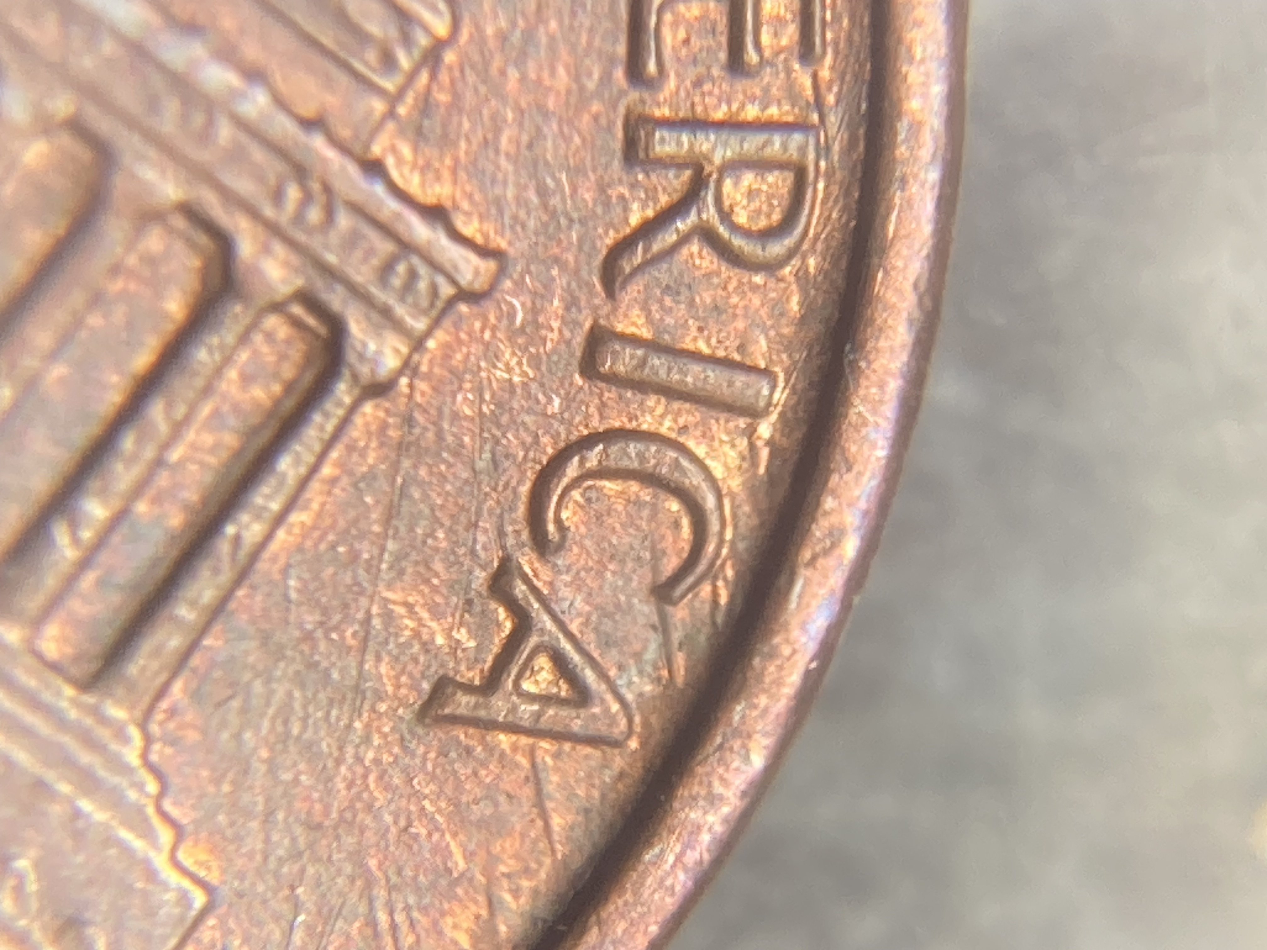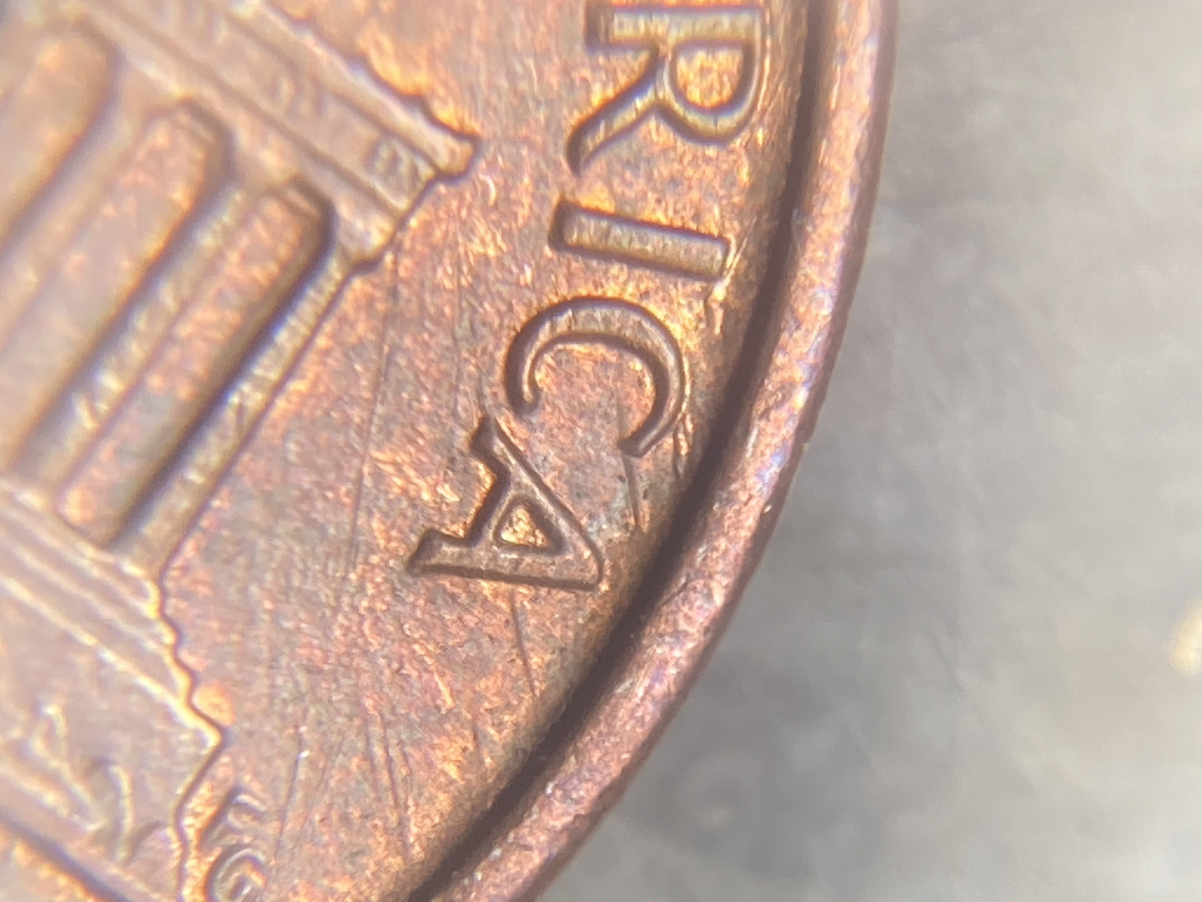 So the last 3 photos are a photos of 1998 P trail dies. The reason why I think 1988 P could also be die trails, is if you look at the E in America, the trail on the E in america 1998 P trail looks very similar to the E in america on my 1988 P question. Let me know what you think. Its either die scrapes, or die trails. If die scrapes, its in a weird spot and going in an unusual direction/has strange angle. Took me forever to realize the similarities to trails.