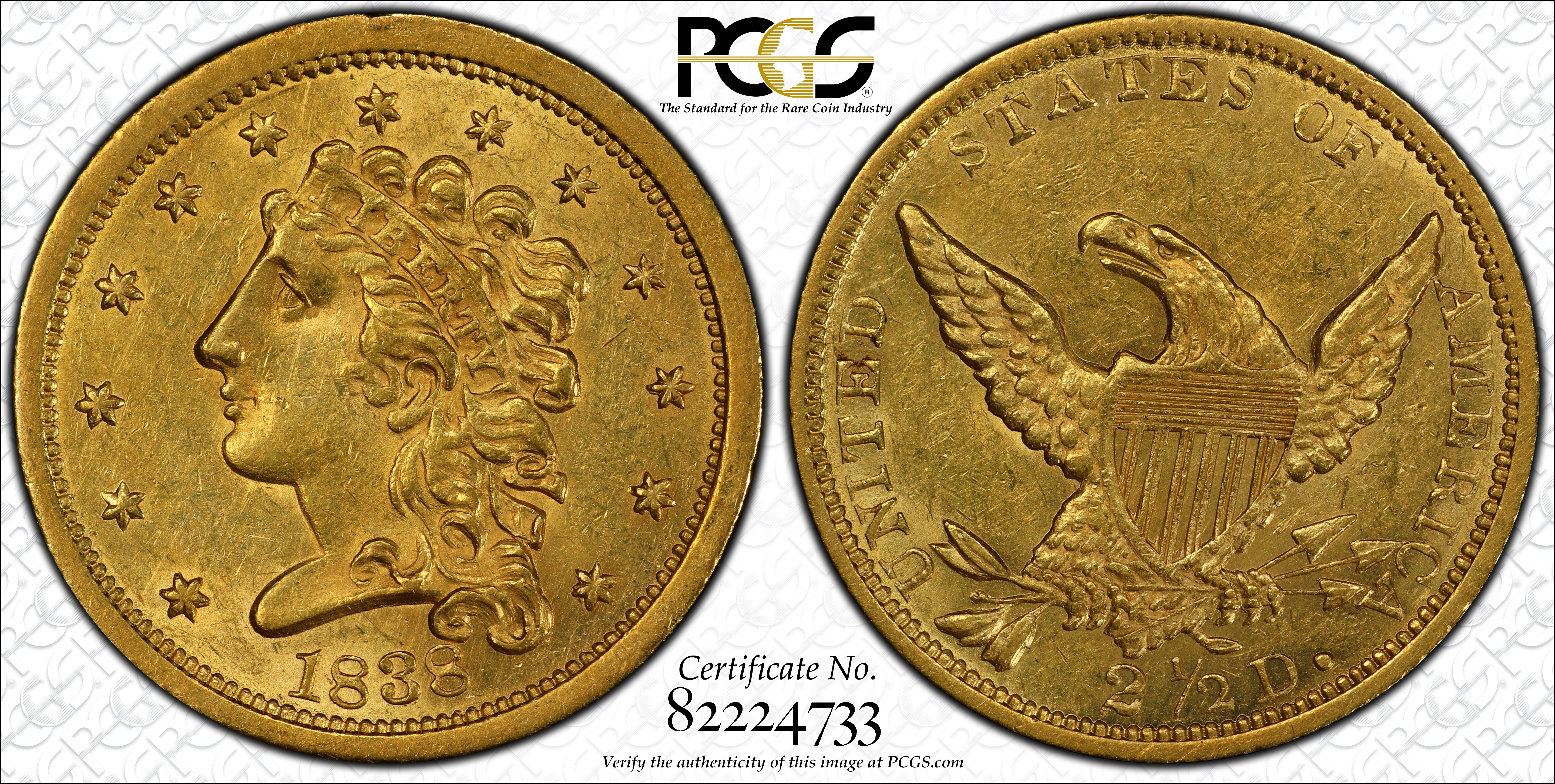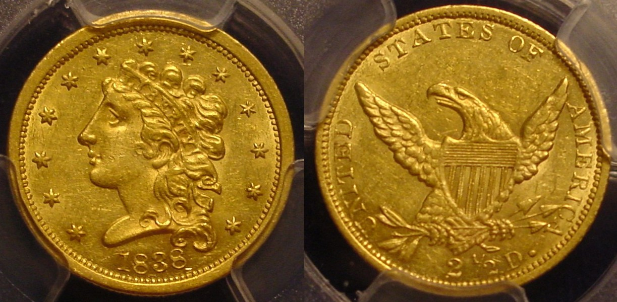 And this 1838 quarter eagle , graded MS-61.