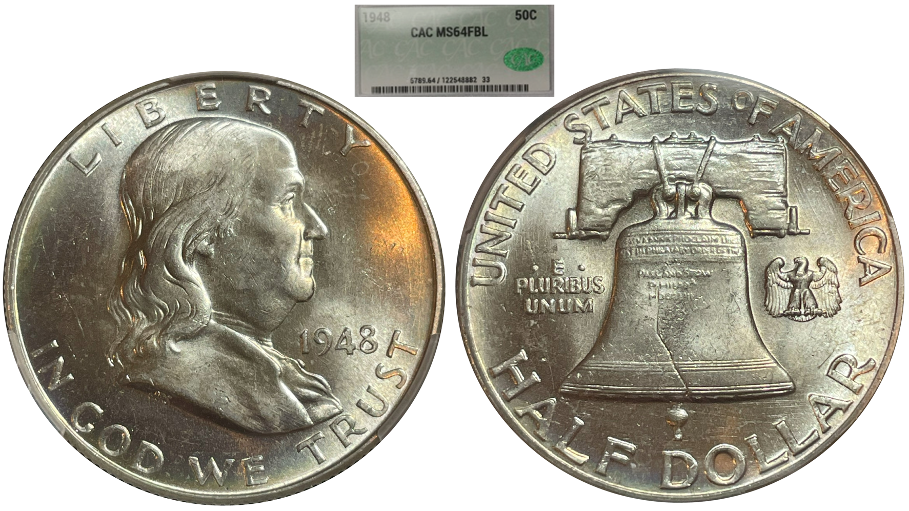 I bought this one specifically because I didn't have any coins in a CACG holder. I had just gotten a new storage box for my coins and wanted to see how the slab would fit. I wanted something that wasn't too expensive but would be a nice fit in my collection, so landed on the idea of another Franklin half. I guess this was a precursor to the direction this set was going to take (the slab fits nicely BTW).