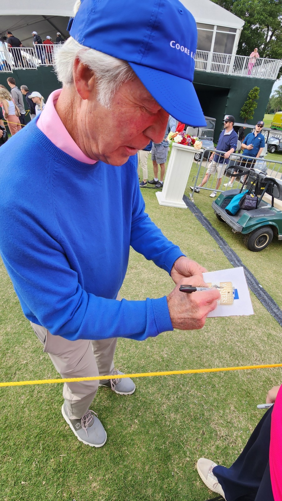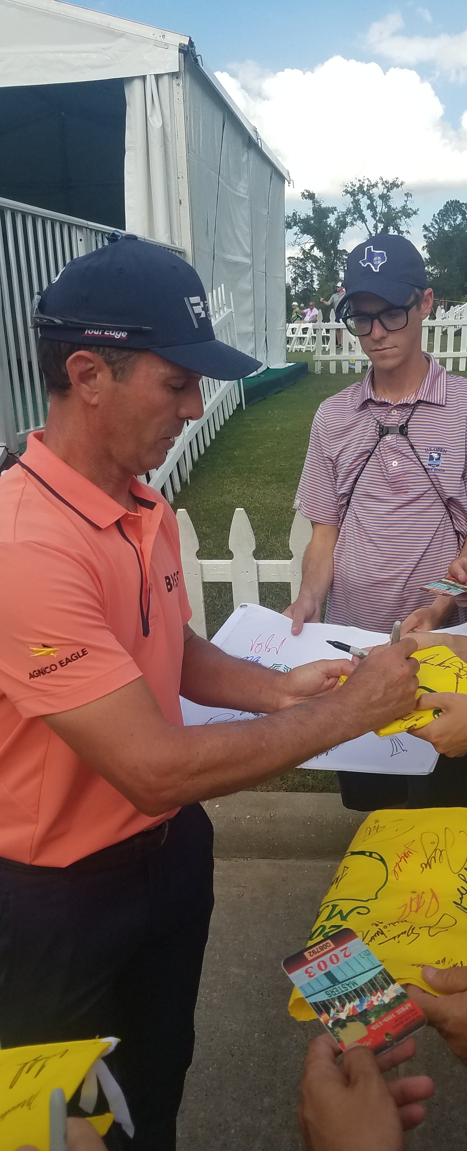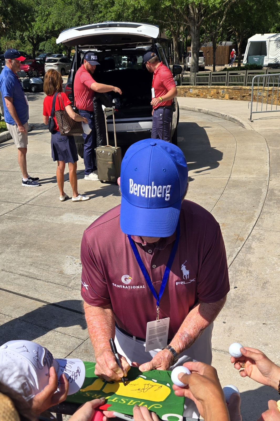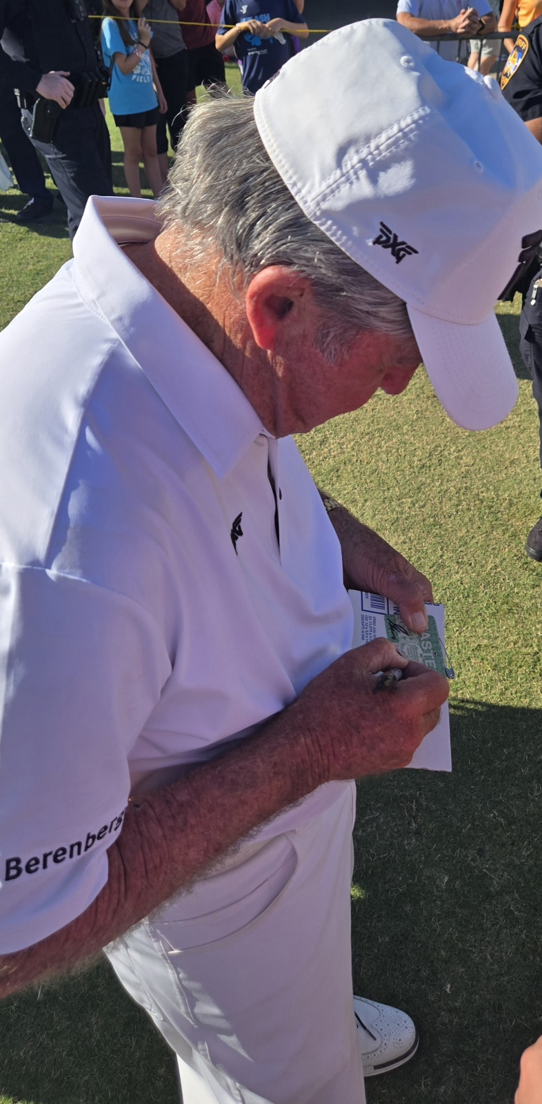 probably my biggest get was Tom Watson on the emerald green Masters flag up above. he is notoriously difficult on anything Masters, yet my girlfriend worked her magic that day. had it been me standing there with that flag, over a 100% chance it would not have been touched.