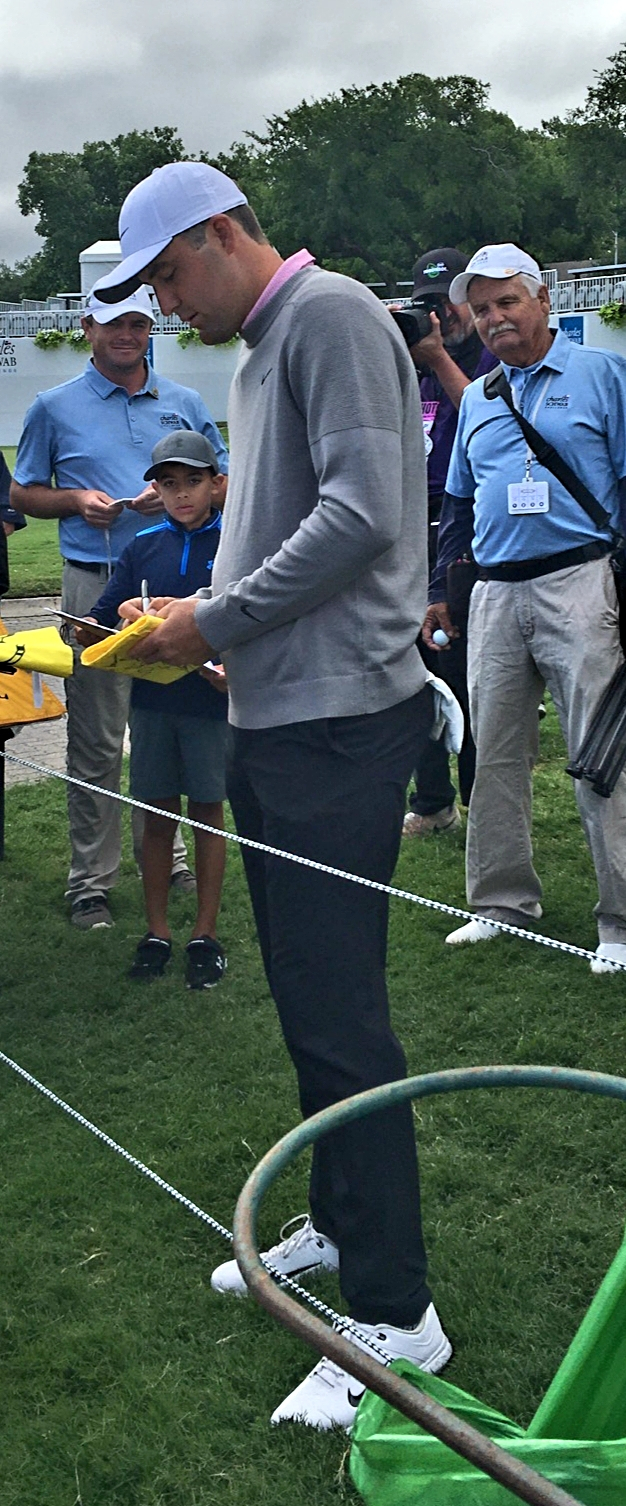 another time i was at the Charles Schwab in Ft. Worth and my girlfriend didn't go, so i was flying solo when it came to graphs. Justin Thomas rejected me on a golf card that already had a facsimile signature on it. "I've already signed it" is what he said to me, and gave it back. in his defense, he had just been pelted by some kids with some mind-numbing questions, such as, "Hey Justin, what's your favorite club!!"........and that kinda set the tone. You could tell he was over it.