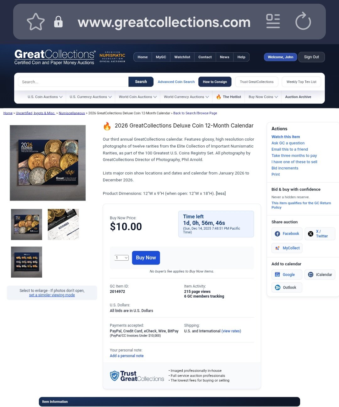 https://www.greatcollections.com/Coin/2014972/2026-GreatCollections-Deluxe-Coin-12-Month-Calendar