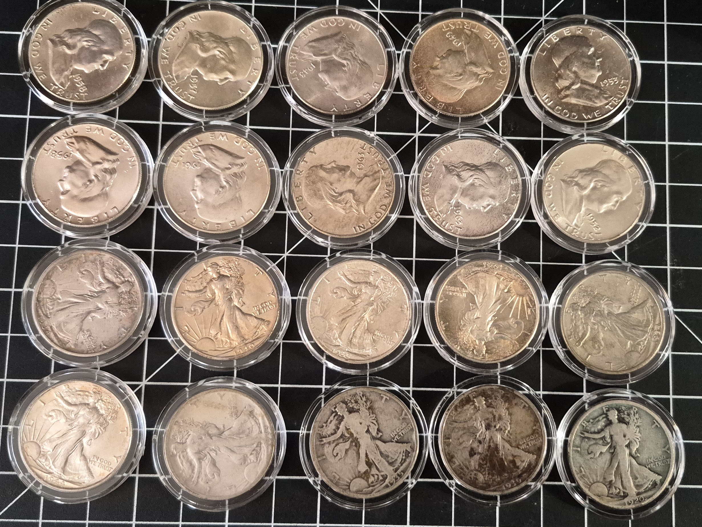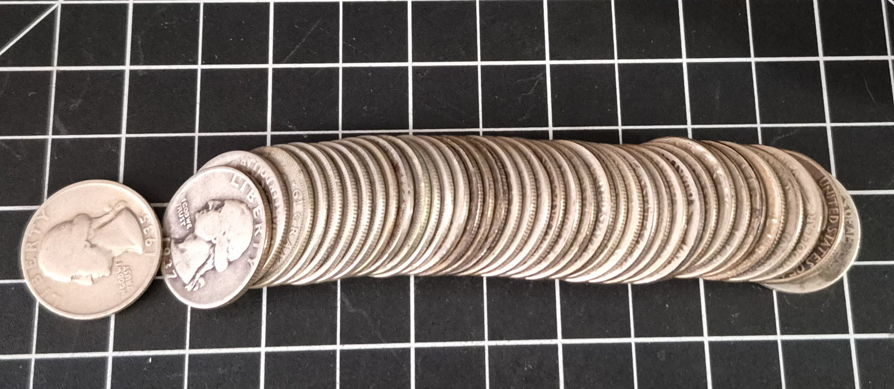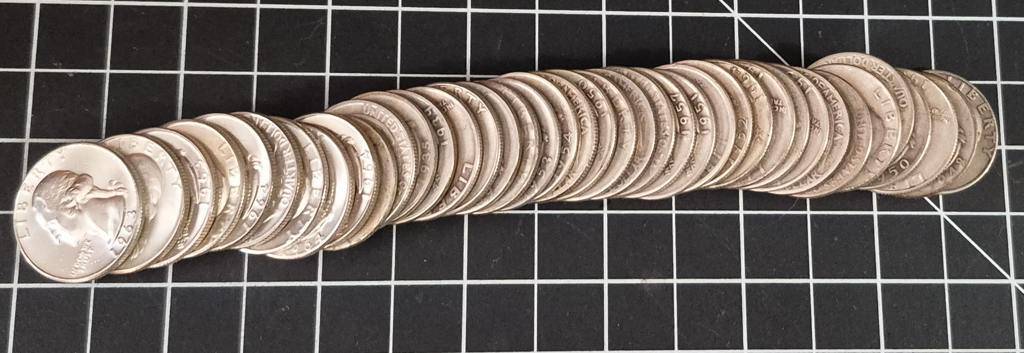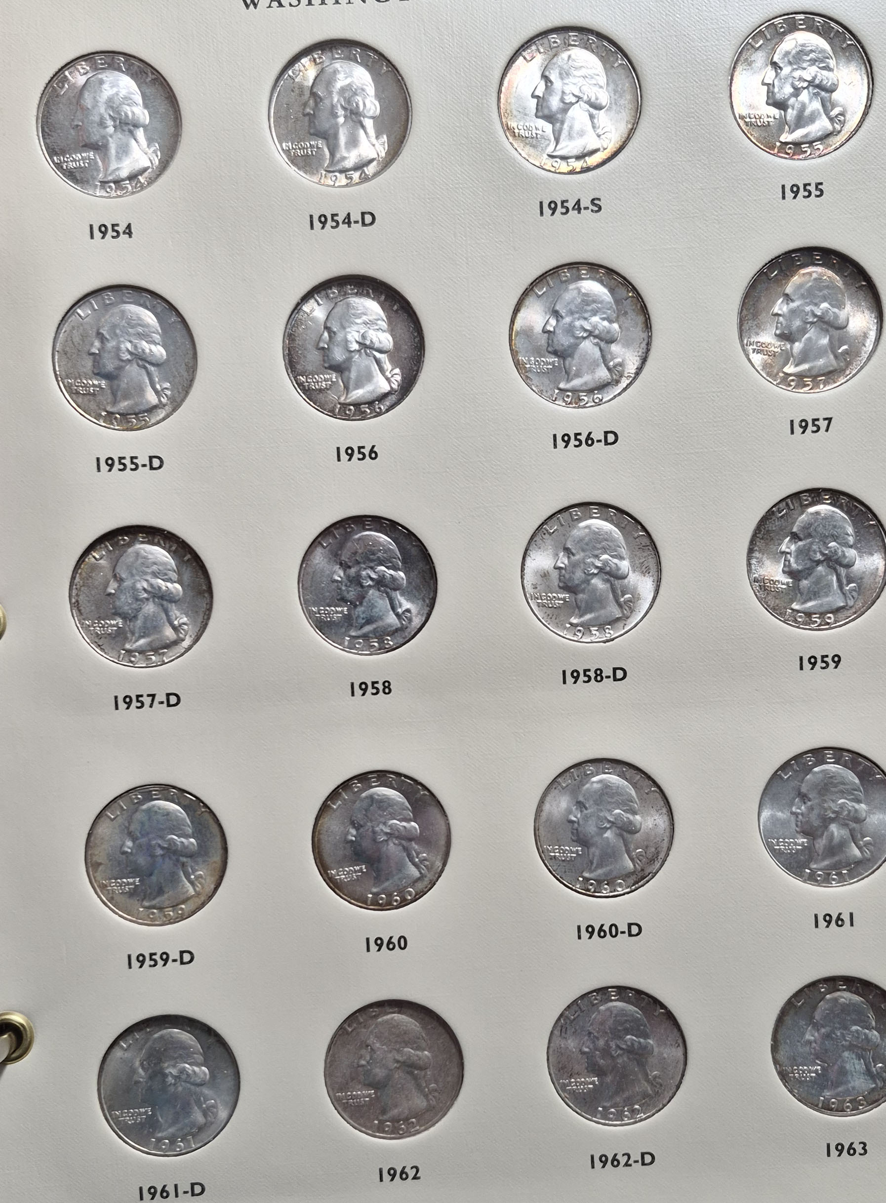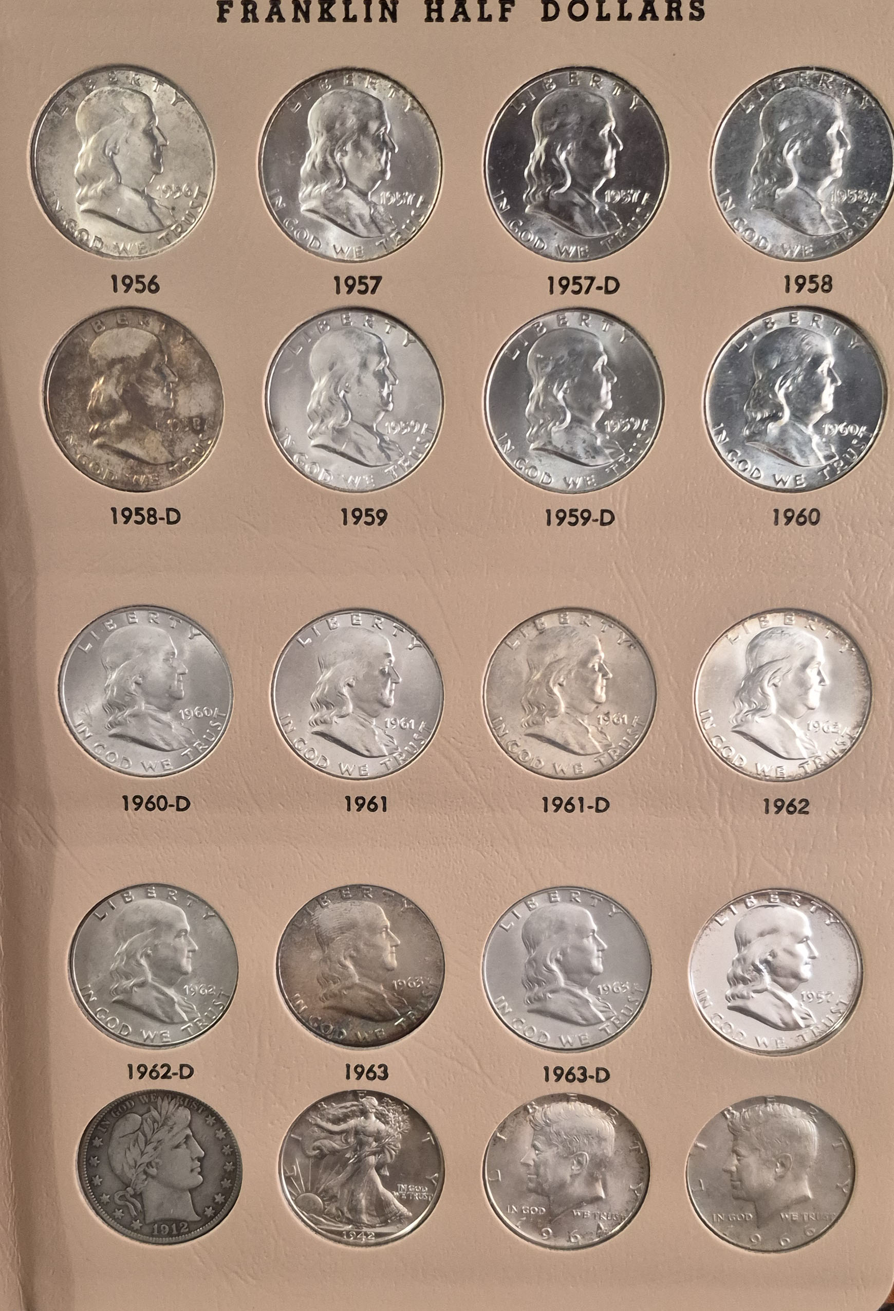 The toned 1958 Half has toning from the mint set it was removed from. Several of the quarters and halves were broken out of slabs for my collection. The two 2006 reverse proof sets are still in their original shipping packaging so should qualify for first day of issue is sent in the OP. There are several pre 1964 proofs in the mix. Circulated coins range from well circulated to AU, I didn't make any distinction in my spreadsheet.