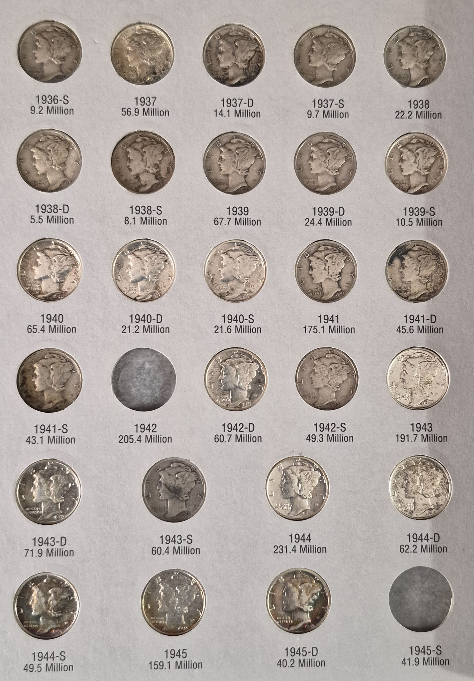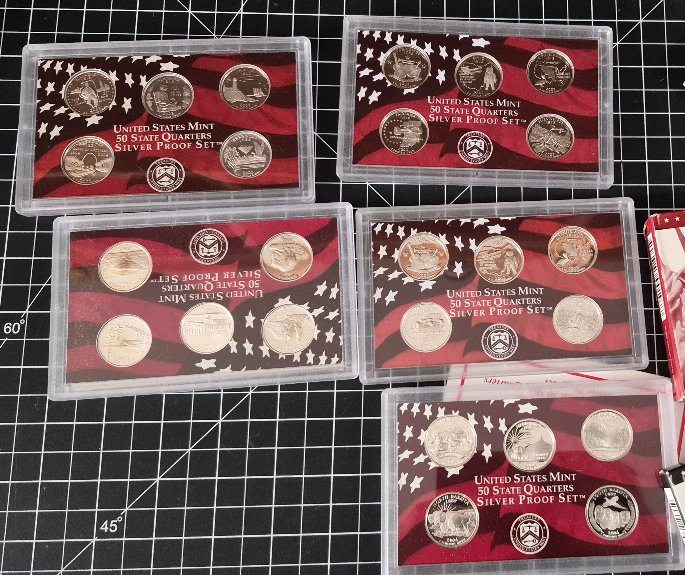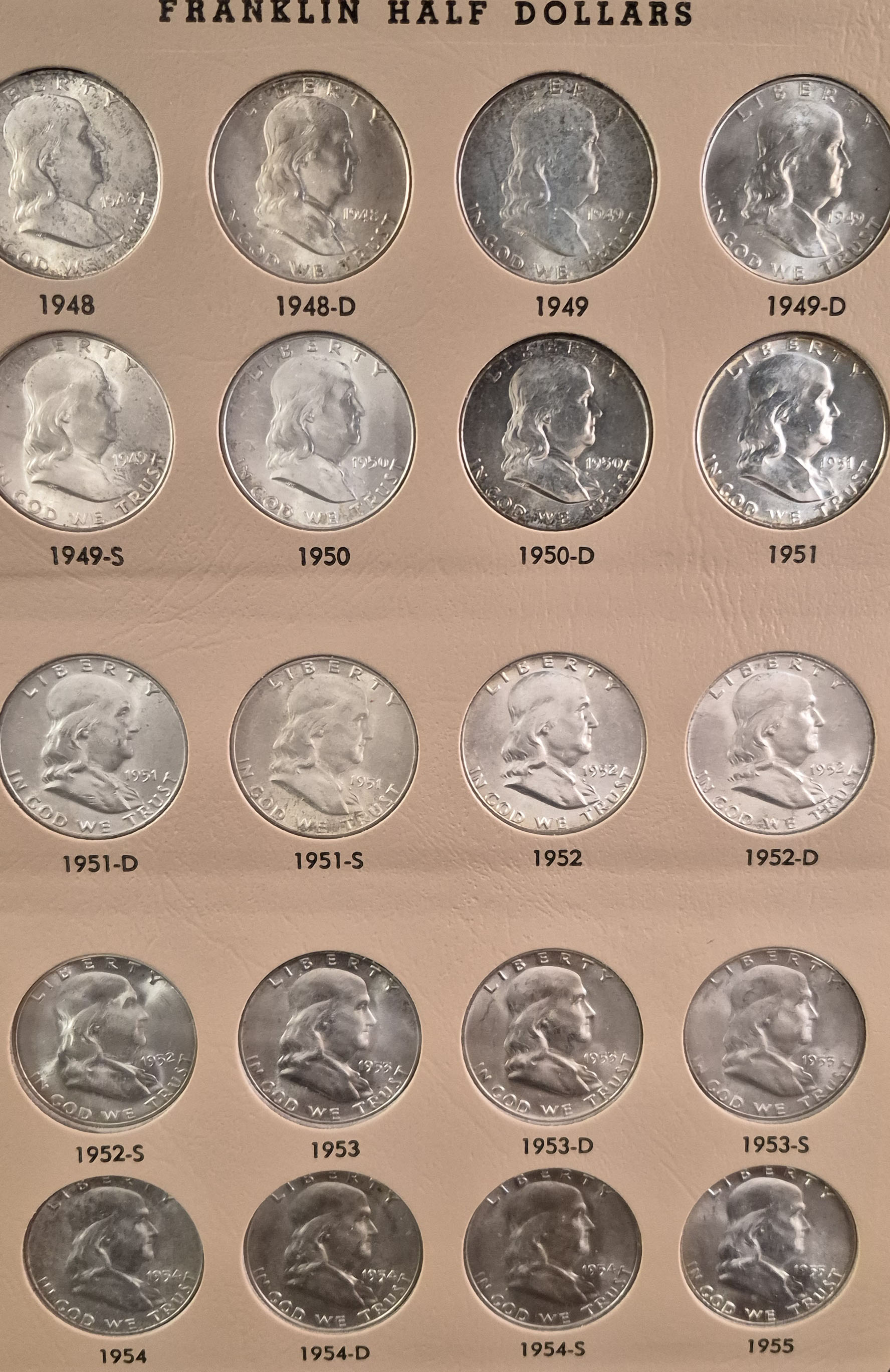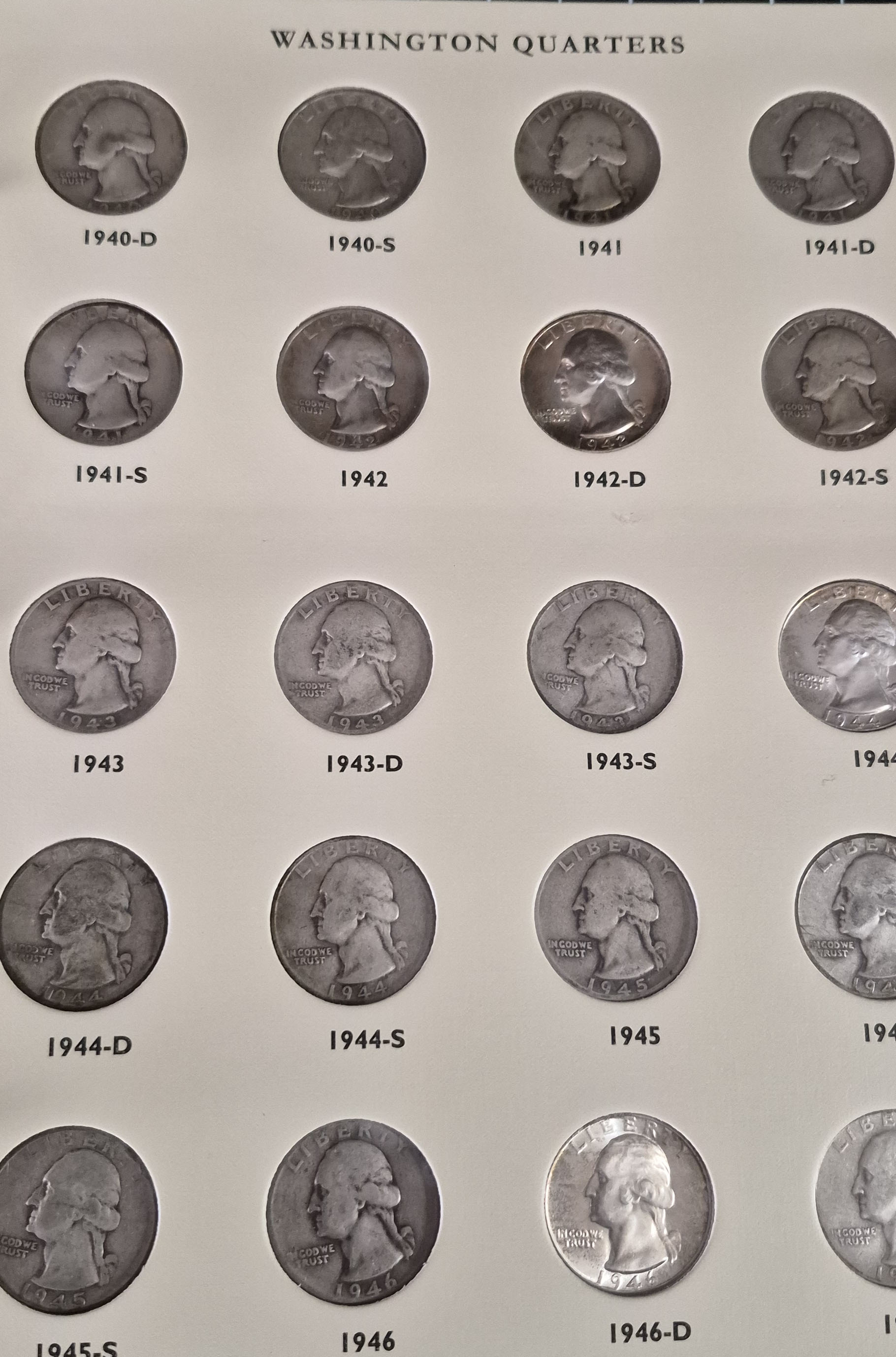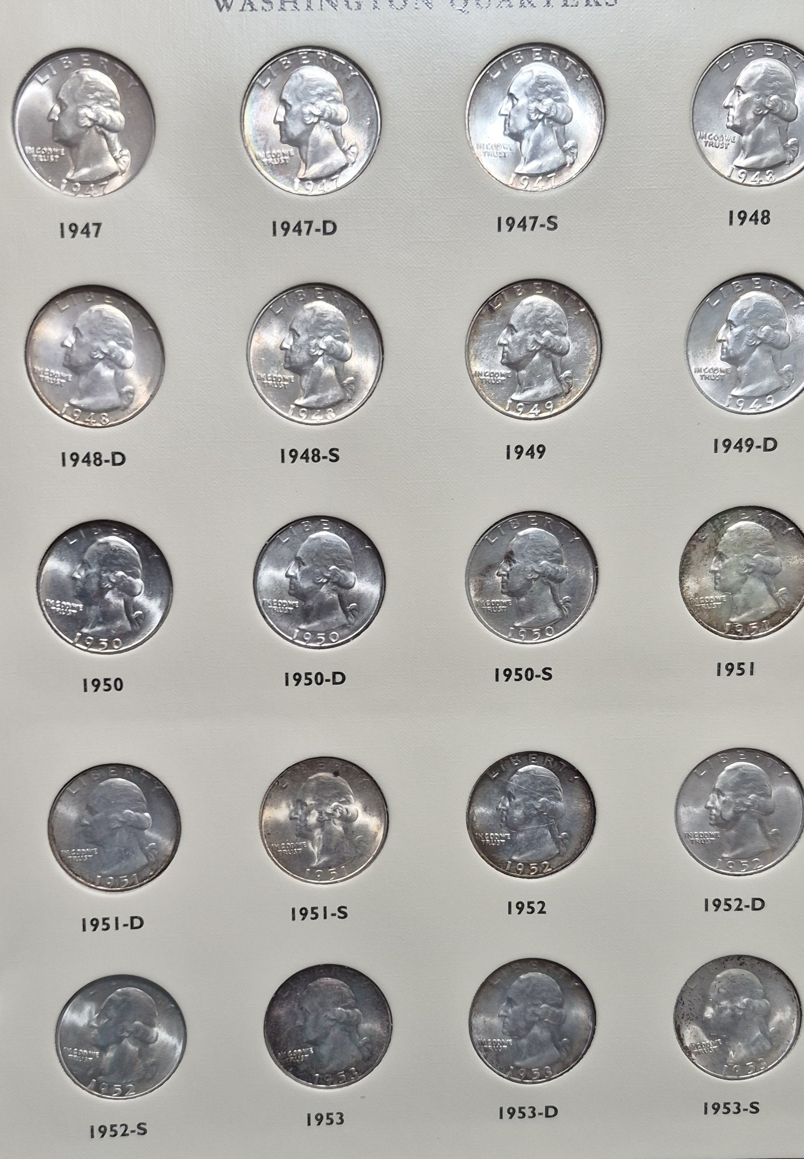 The toned 1958 Half has toning from the mint set it was removed from. Several of the quarters and halves were broken out of slabs for my collection. The two 2006 reverse proof sets are still in their original shipping packaging so should qualify for first day of issue is sent in the OP. There are several pre 1964 proofs in the mix. Circulated coins range from well circulated to AU, I didn't make any distinction in my spreadsheet.