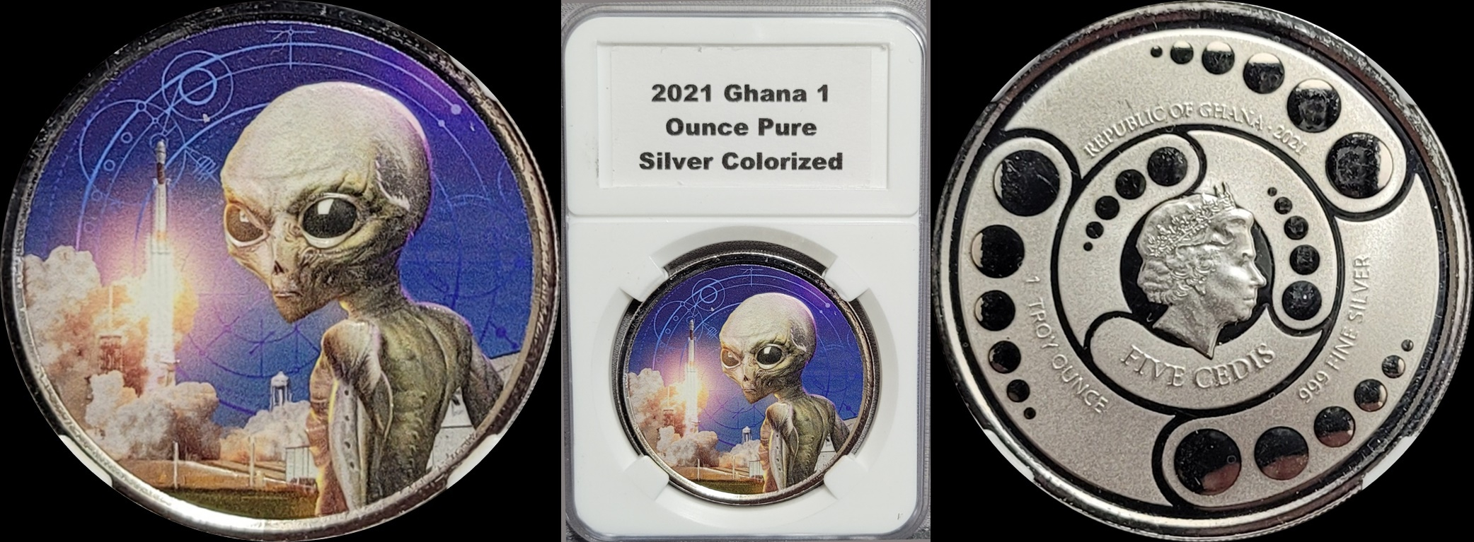 2021 Ghana 5 Cedis Colorized Alien Silver Coin