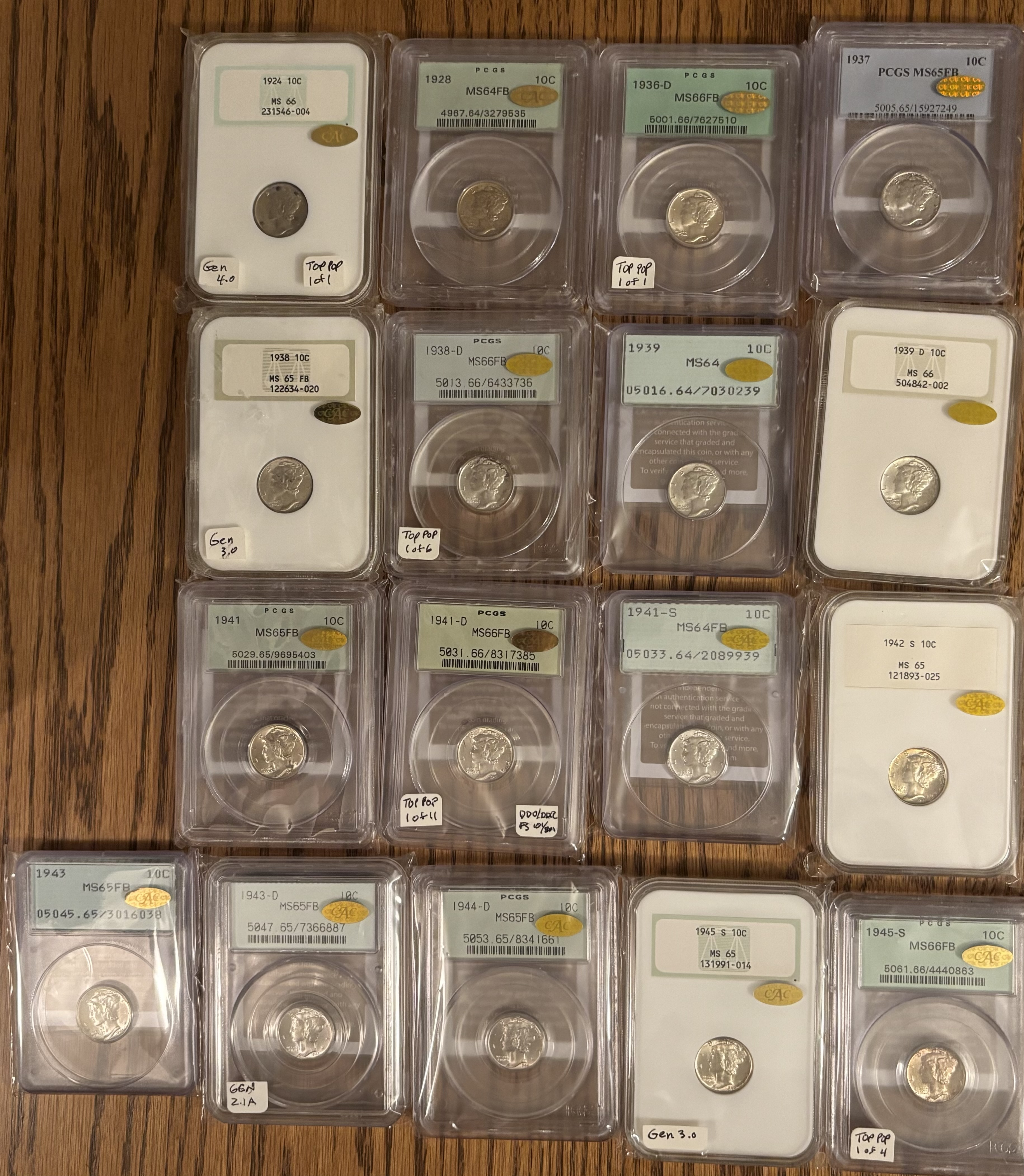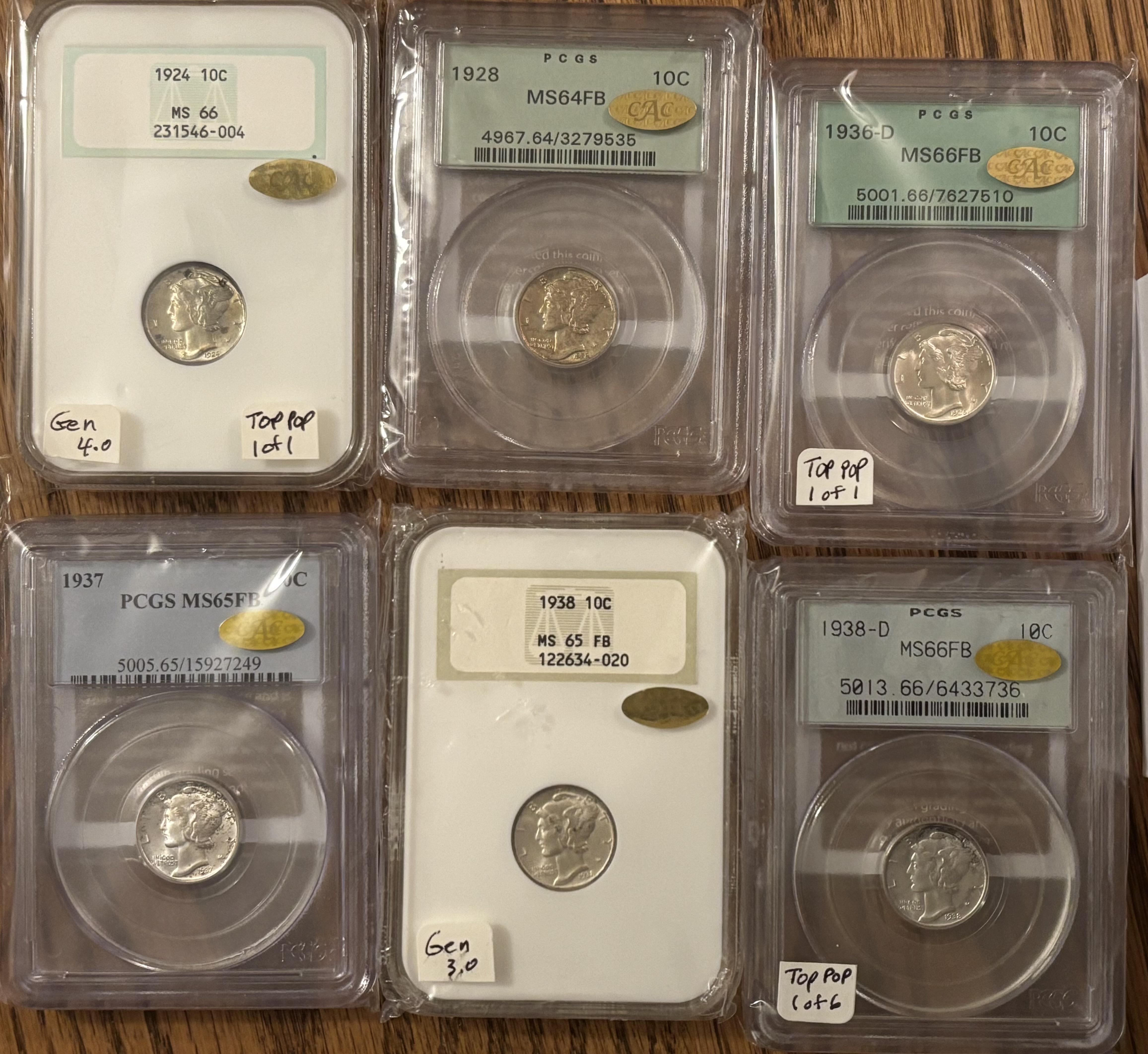 Hey @pcgscacgold, GC has three Mercury dimes in early PCGS holders with CAC gold stickers in this Sunday's auction. Two are dates that you don't yet have: a 1938-S and a 1945-D. Not my coins and out of my price range, so I'm not a competing bidder. Good luck.