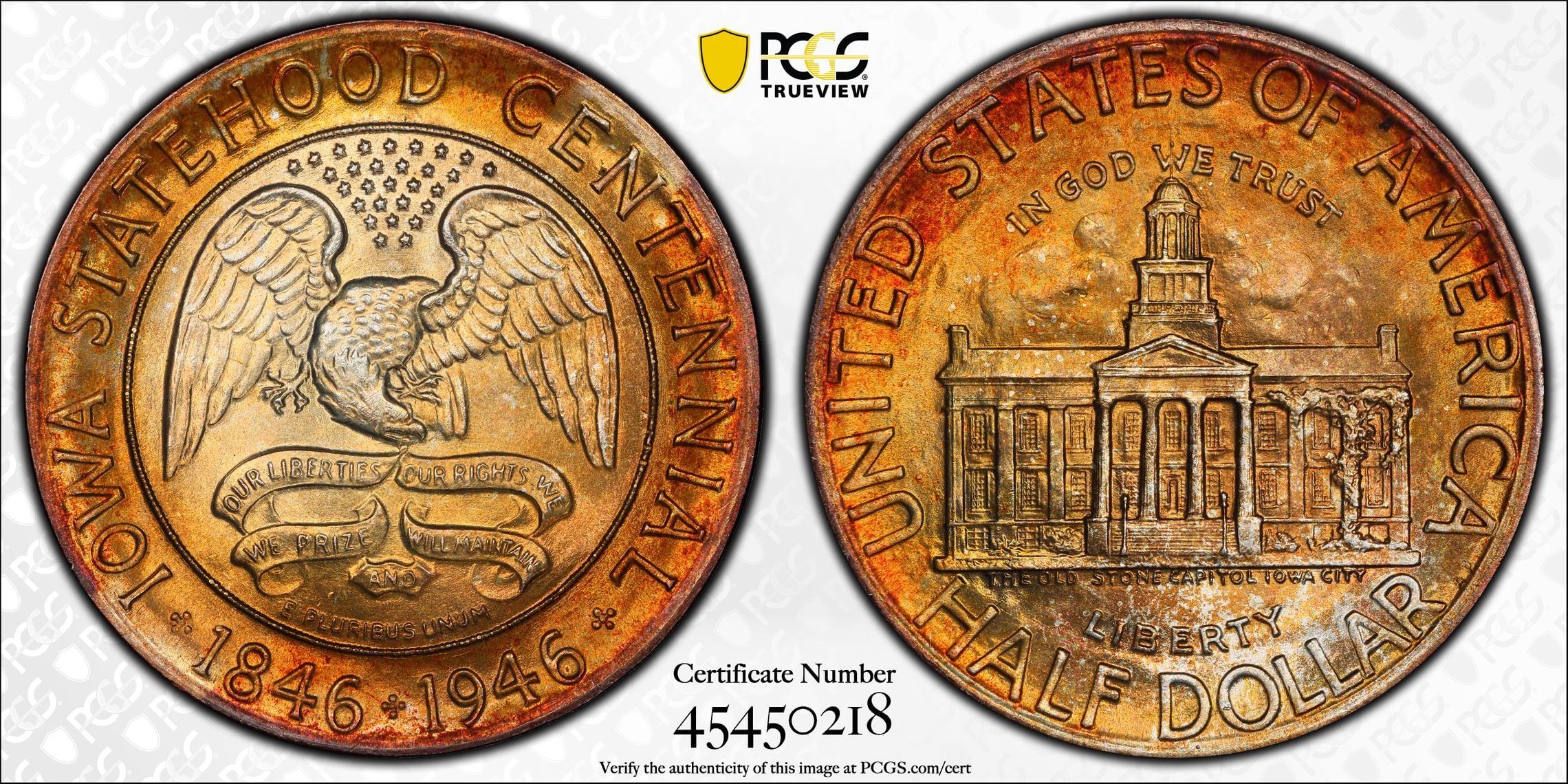 I have one last commemorative I want to post, but I think its toning sort of clashes with the toning of others I posted. So here, in a separate post, is an Iowa, graded MS68: