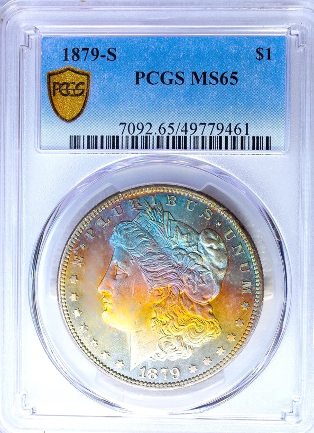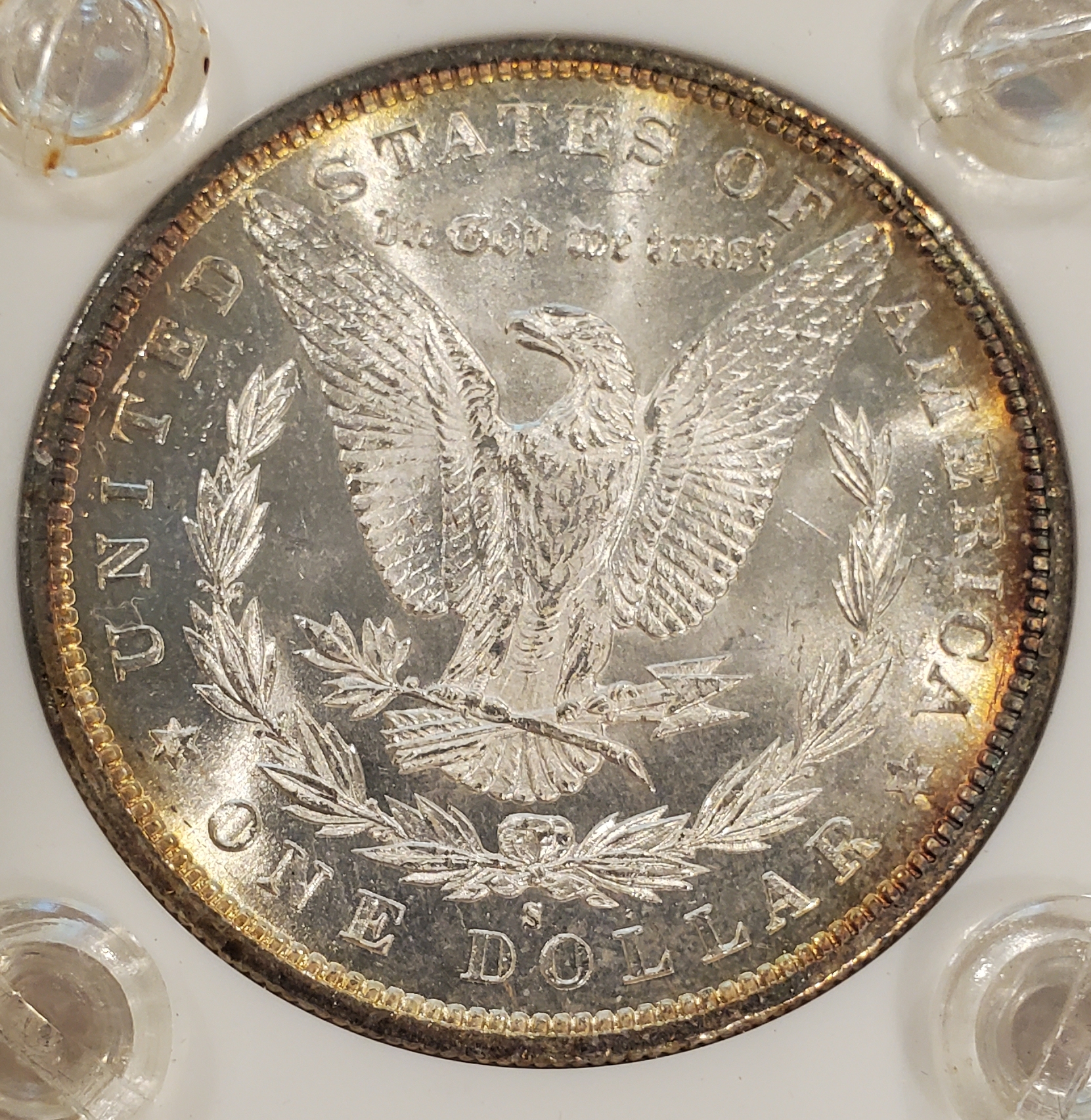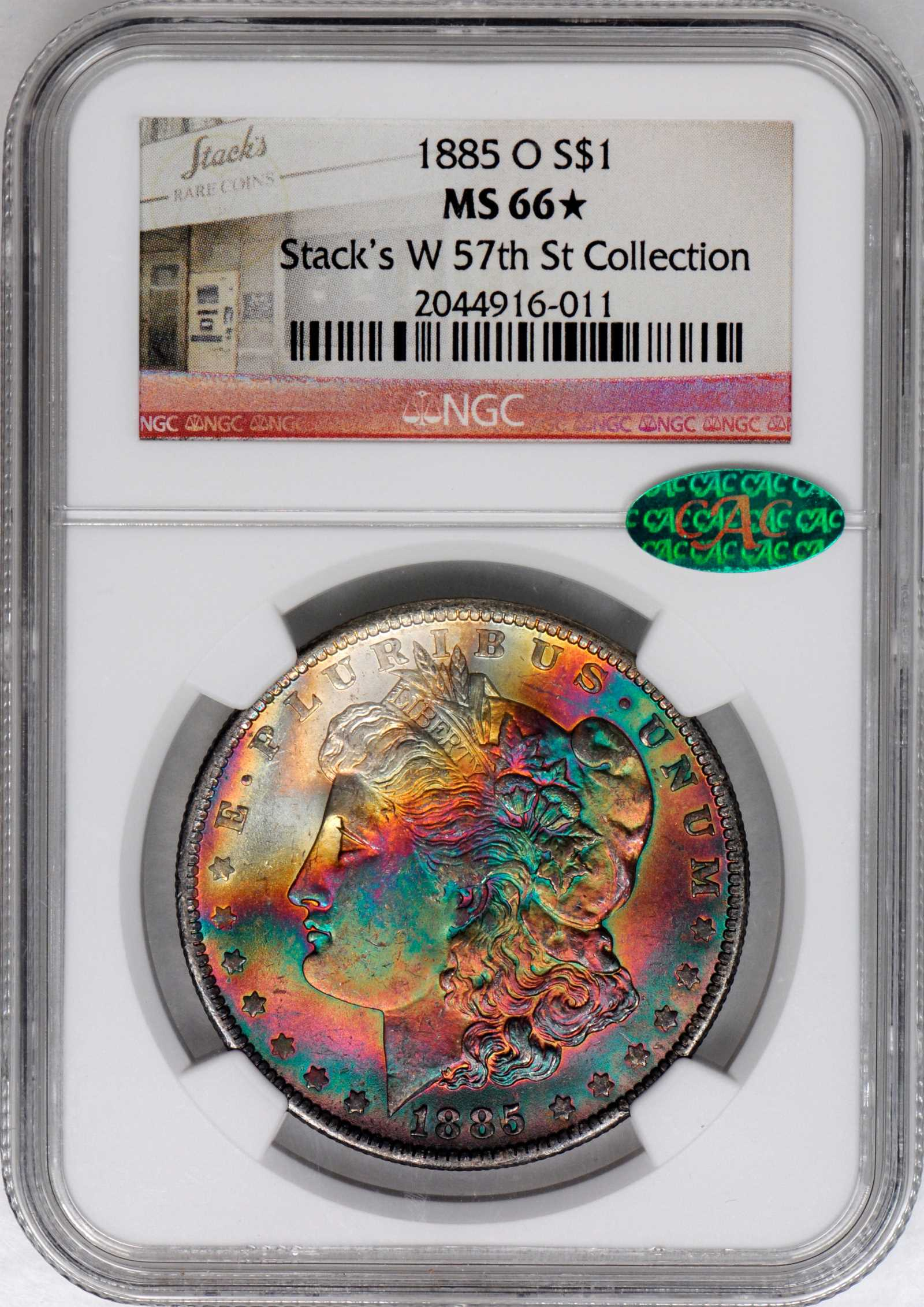 There are some beautiful coins posted here. Here's one from my collection of rainbow toned Morgan dollars. Acquired about 10 years ago from, appropriately, a Stack's auction sale.