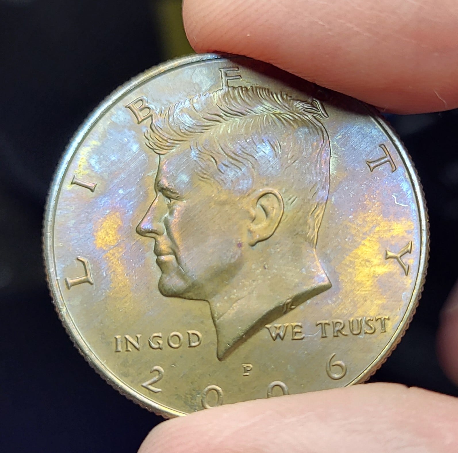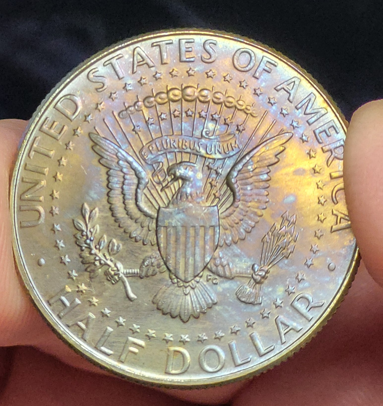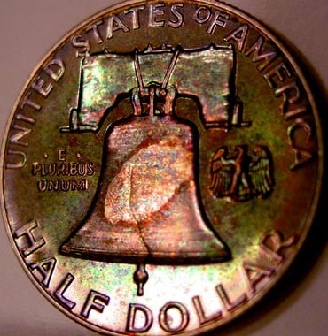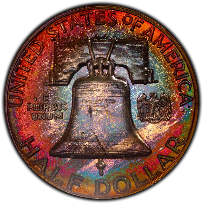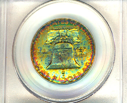 Well, I suppose it's fortunate for me that PCGS did not have a bad day. Here's another example of where I "lucked out" with PCGS on a rainbow toned Franklin half dollar (pictured with slab):