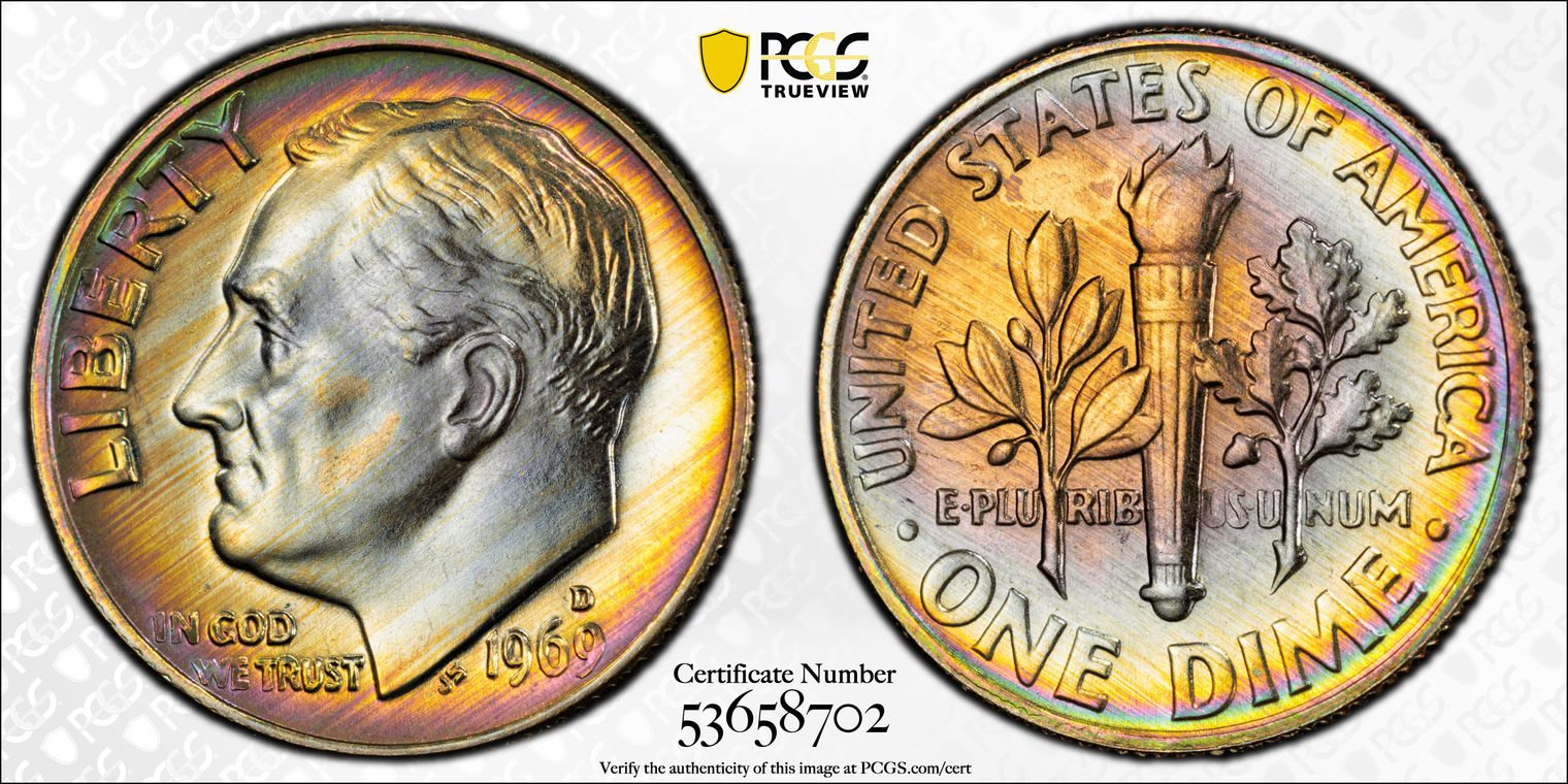 The Dinosaur Man asked about my rainbow toned Franklin above: "where is the slab?" Sorry, I don't have access to any pictures of this coin in the slab. I'm almost certain I don't have a True View picture.
