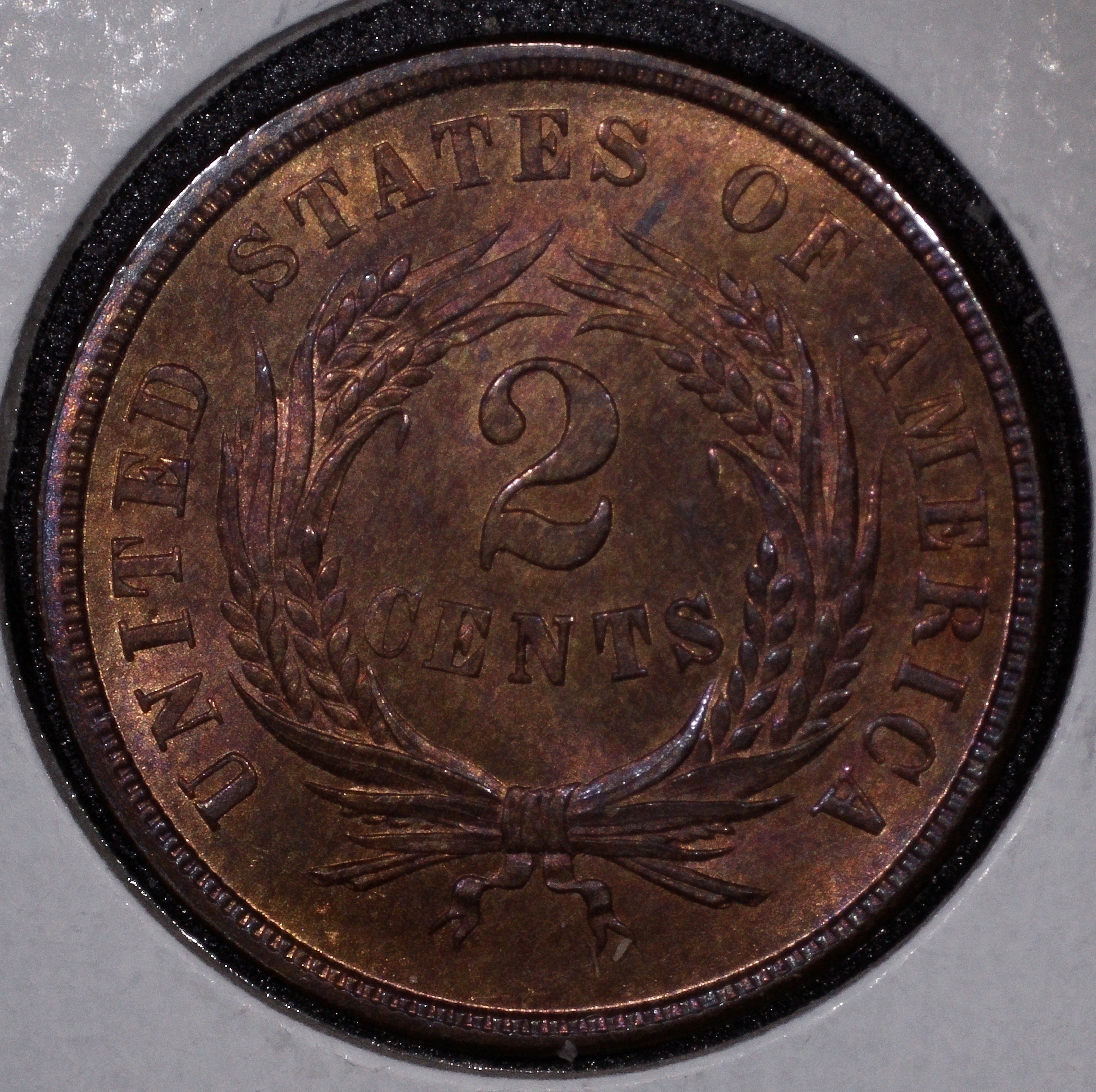 I can’t see the 2 Cent piece well, due to the lighting. I’d guess MS64 RB (nearly BN) and I considered a lower grade.