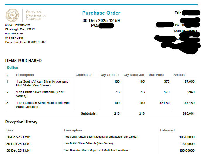 Pretty sure it’s a new thing because of the massive amounts they are taking in, and need to have a refining outlet for it. Right now they are putting into inventory only the items with most demand. Which in this shop are ASE’s and Libertads. Speaking solely on silver ….