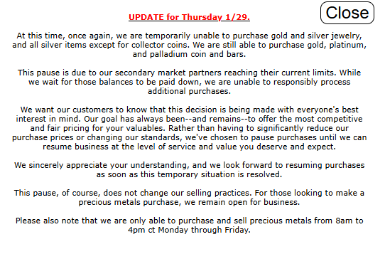 Owner said way more sellers than buyers but still had people coming in to buy. Mentioned they were almost all new to the market, never bought metals before. RGDS!