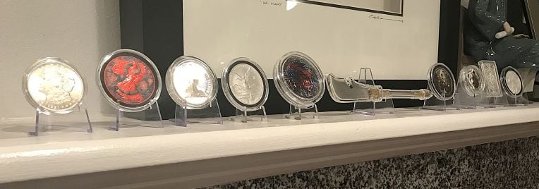 I finally bought some Pandas. My intent was to give them away as gifts but I figured the little kids would rather have cash. This is tho I despise the CCP but I did buy a few and they are lovely coins. The Perth mint makes some terrific coinage in their snake and dragon series of coins that I couldnt help but buy a few. The Lunar series is very impressive. I love artisan coins even tho I can only afford a few due to the premiums. Like the Spectres series I ended up paying $289 for. https://spectres.io/collections/new-releases/products/guan-yu-green-dragon-crescent-blade .It was a 2 oz coin I just had to have. My wife is an artist and my mantle collection floats her boat.