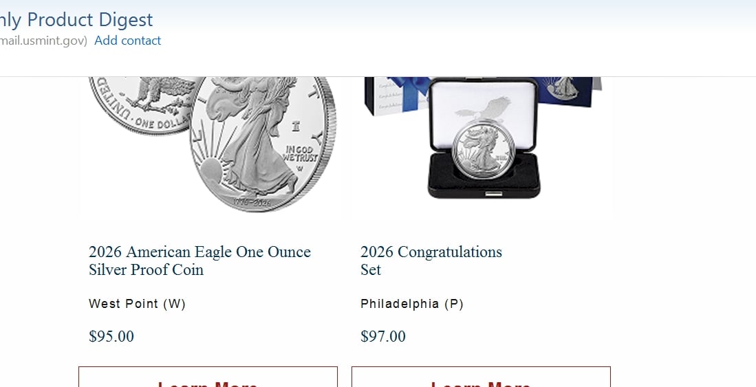 We have been here before. Those of us who are paying attention know exactly what's going to happen. I don't know the exact price, because I don't work there and I'm not on the speed dial of anyone who does, but 2026 numismatic silver is not going to be sold by the Mint at anything close to $97 per ounce.