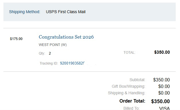 Anyone know anything about a West Point Congratulations Set? I got my order confirmation email a few minutes ago...