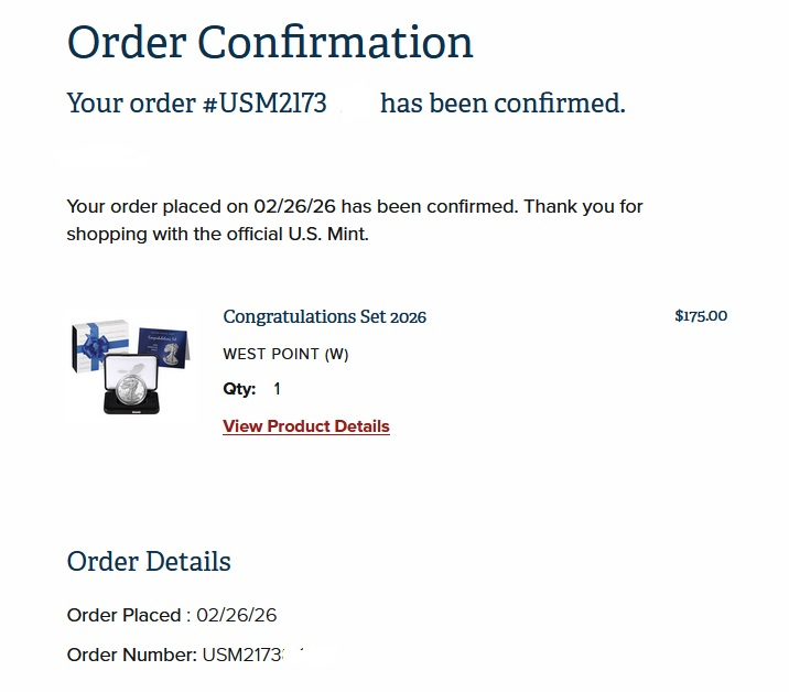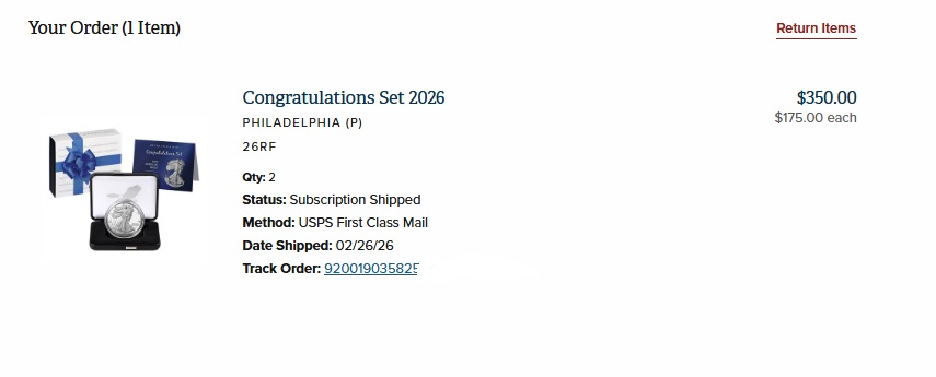 My shipped order for three also shows a W mintmark Congratulations set. Is the mint screwing up the two products and mixing them together?