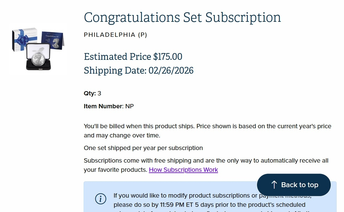 I got in yesterday for a 2026 Congratulations Set Subscription and now I am wondering about the price since Silver has come back down?