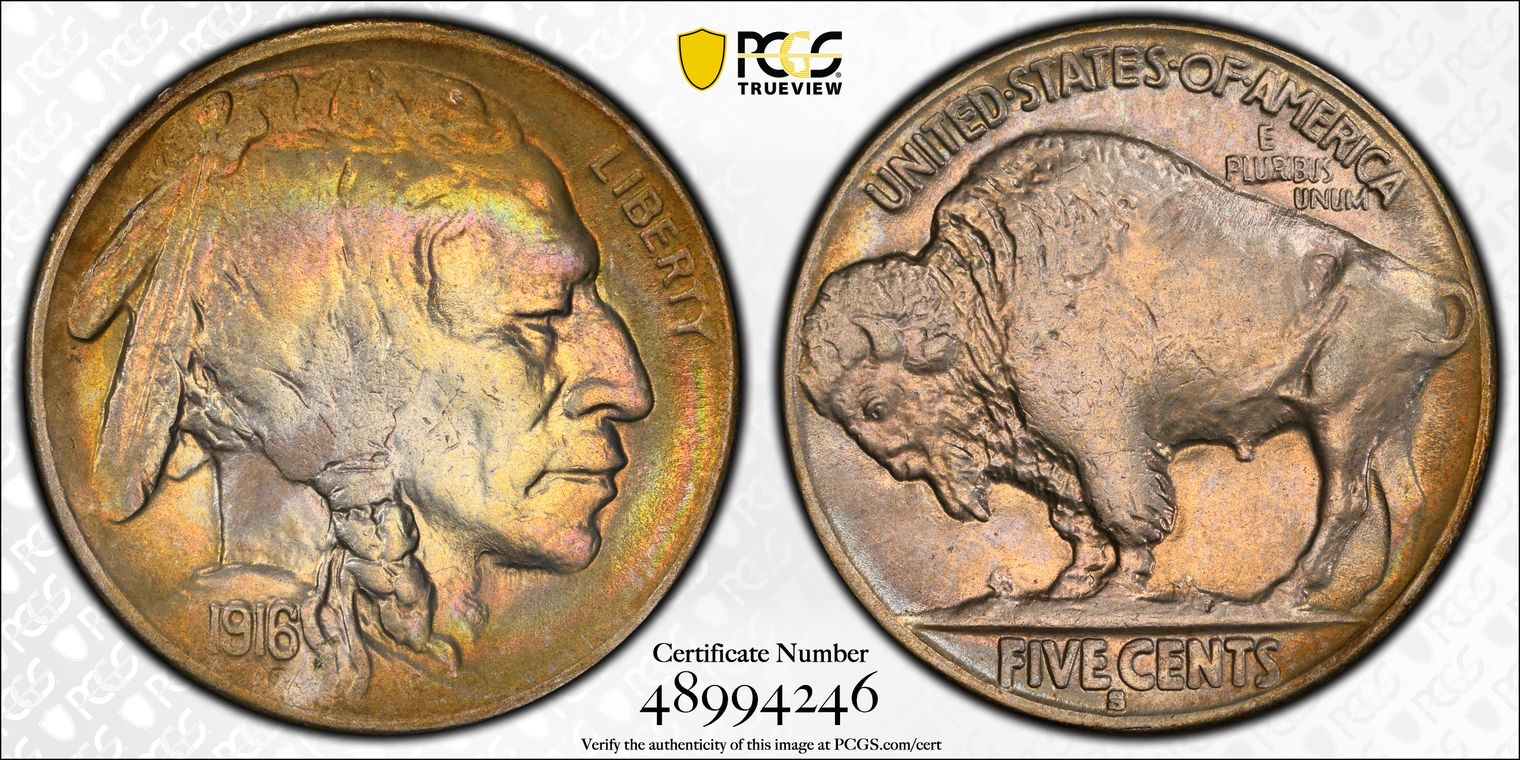 1916-s PCGS 58, asking $225. REDUCED TO $200 SOLD Beautiful overall collation with really nice concentric toning on the obverse periphery. Strong clash under the chin and on Indian neck. Super neat piece and very nice under the loupe.