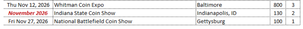 Missing the Great American Coin Show for 2026 in Rosemont (9/30-10/3). Was a great show in 2025.