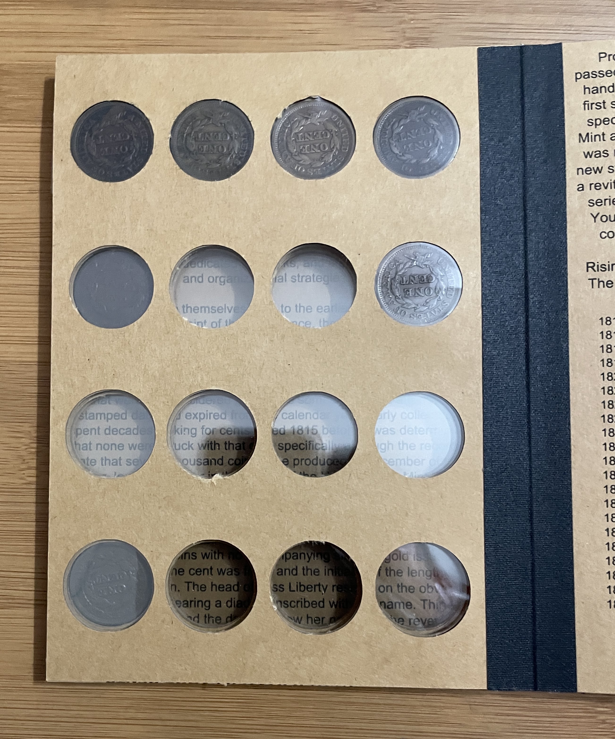 Quick update, I put a dent in filling the holes on page 1 of the custom Large Cent album 🌞
