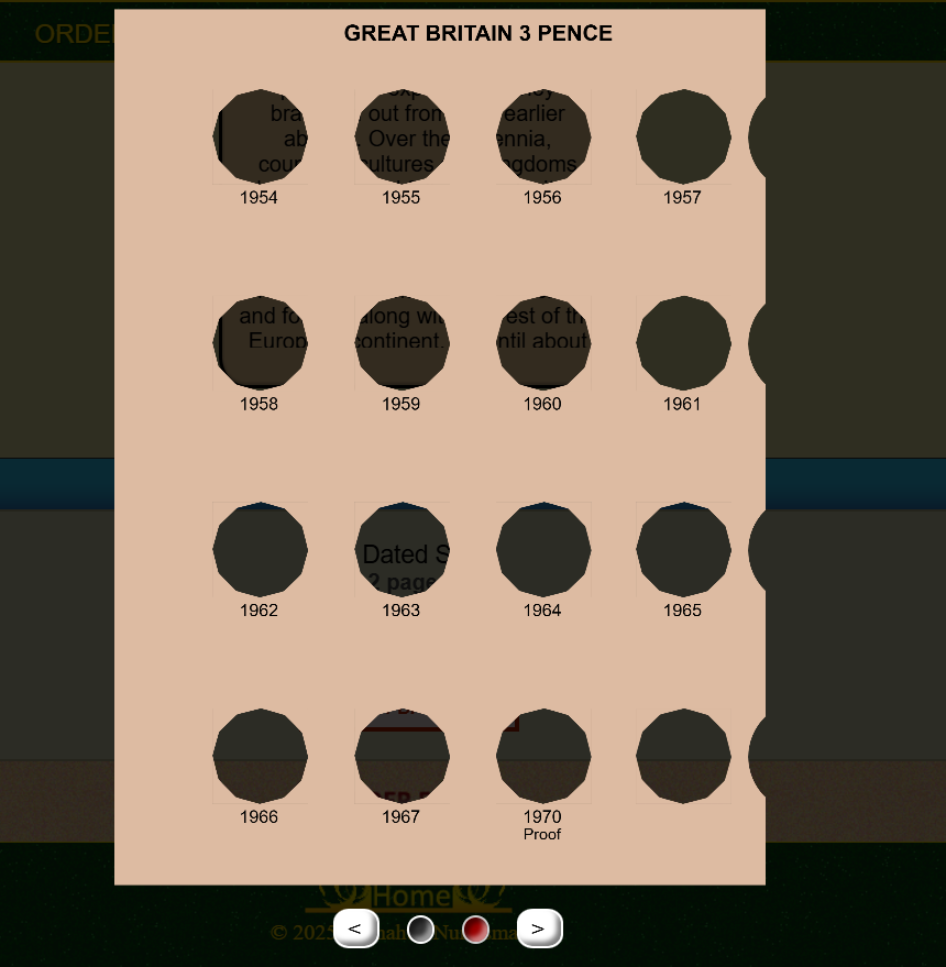 I made a major update to the website! I've reworked the code for the templates to allow for customizable albums with non-round coins, starting with Great Britain's Brass 3 Pence, a 12-sided coin.
