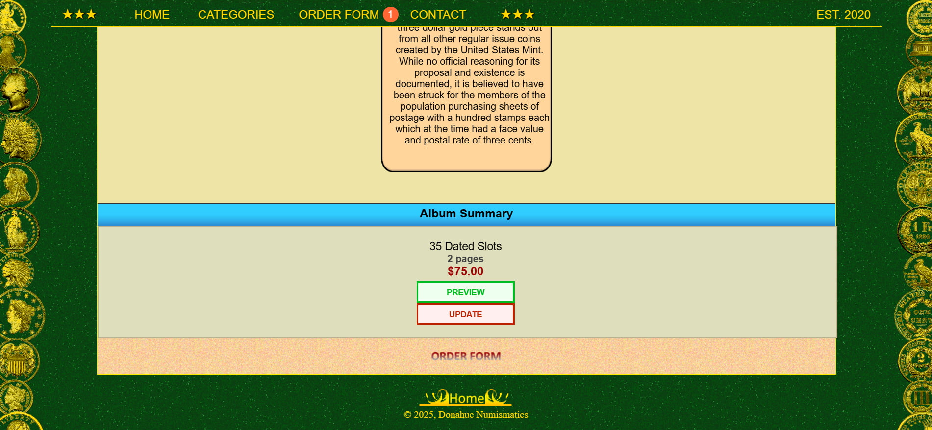In July 2025, an article about the custom albums was published in CoinWeek:
