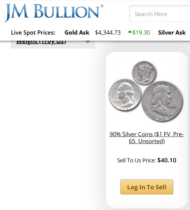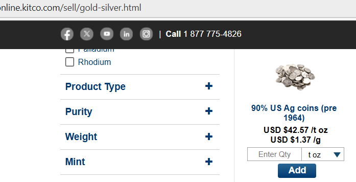 Quick check, Bullion Exchange isn't even buying 90%, JM is at 40x, Kitco 42.5x Keep in mind you still need to insure and ship it to them. Crap dealers as you sday. lol. THKS!
