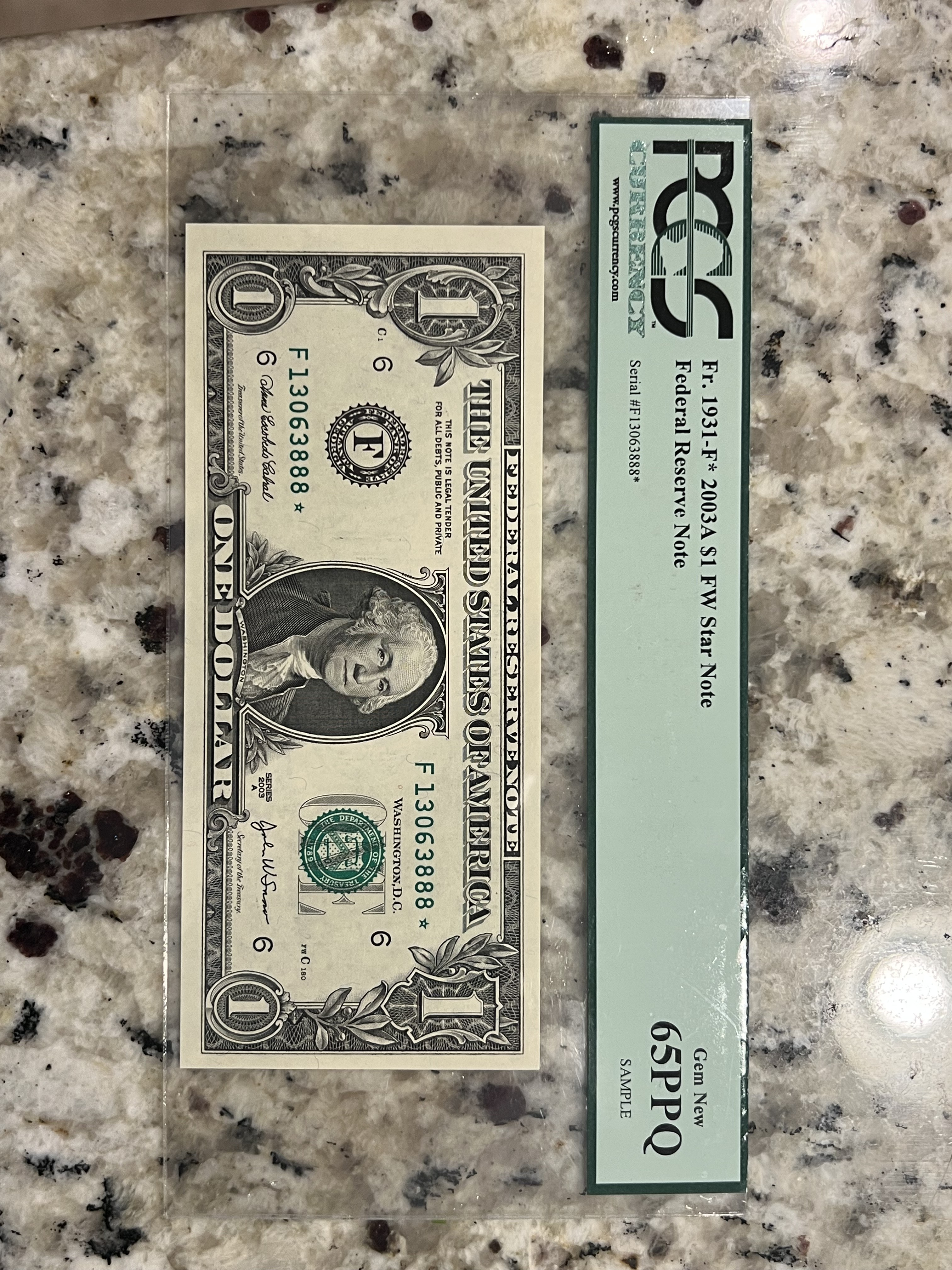 A very quick eBay search for sold items yields approx $5-30 value for the 2003 star note (https://www.ebay.com/sch/i.html?_nkw=2003+star+note+$1+65ppq&LH_Complete=1&LH_Sold=1) and the best comparable I saw for the 1963 mule was the one that sold on Dec 12, 2025 by indiana_coins_and_collectibles for $13 (https://www.ebay.com/sch/i.html?_nkw=1963+$1+mule+FRN/silver+certificate&_sacat=0&_from=R40&_trksid=p2334524.m570.l1313&LH_TitleDesc=0&_odkw=2003+star+note+$1+65ppq&LH_Complete=1&LH_Sold=1)