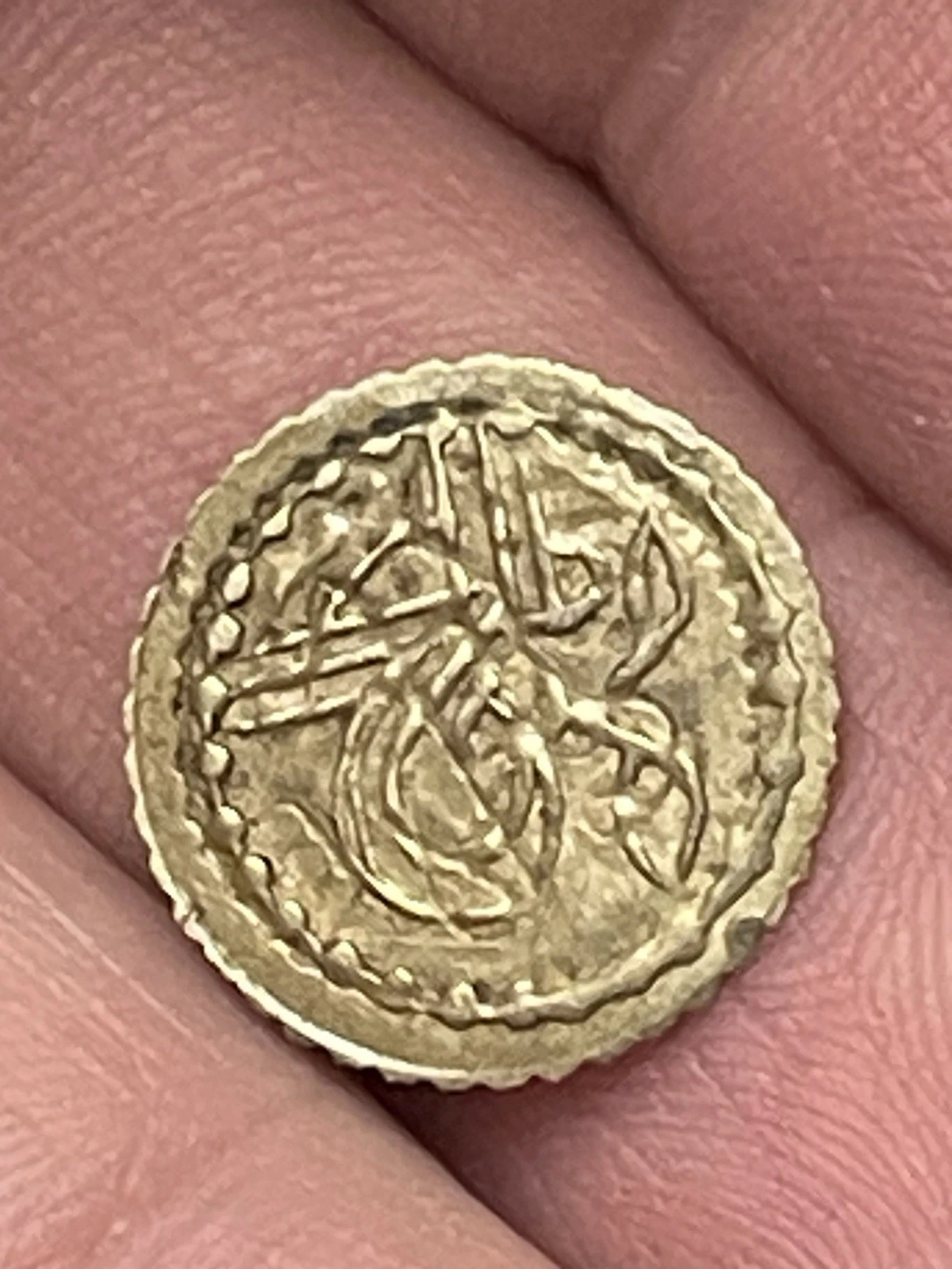 I concur; it's a "jewellery imitation" of an 18th century Ottoman gold coin. They usually come holed, but this one isn't. Perhaps it was mounted, at that notch at 4 o'clock on the second pic. There were several different gold coin designs during the reign of this Sultan; I believe this item is attempting to imitate one of these: https://en.numista.com/34889